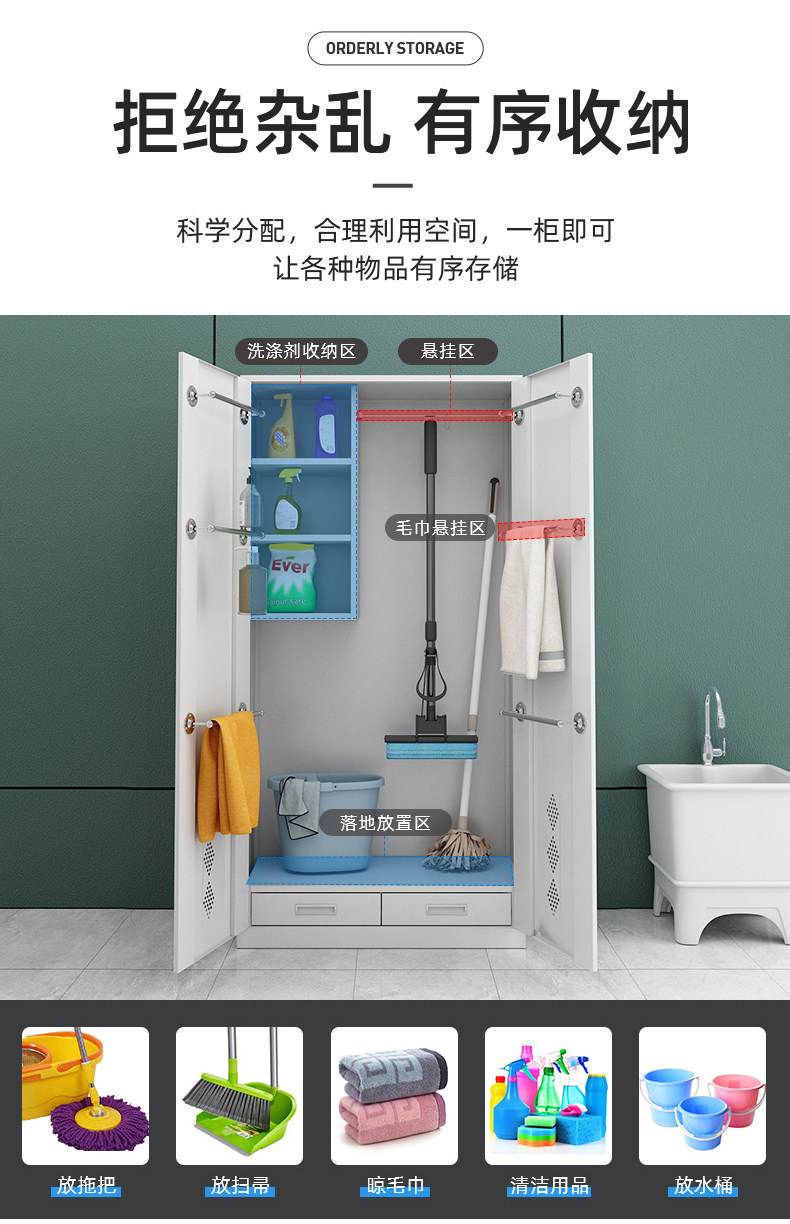 Одноудерное двойное уборное шкаф для чистки из нержавеющей стали Дом Правительственная чистящая шкаф для санитарного шкаф