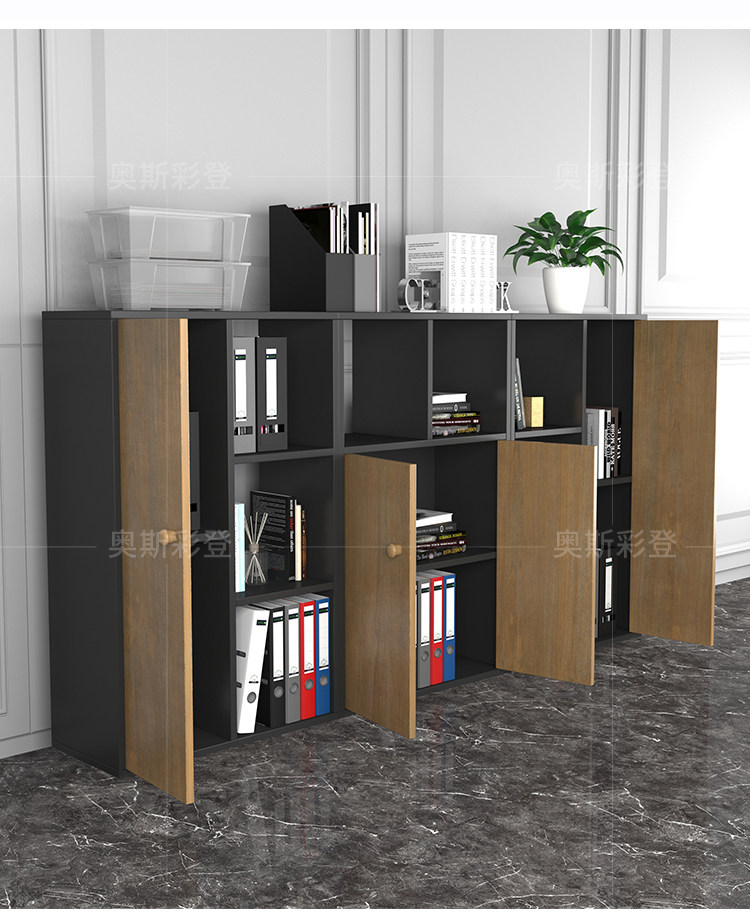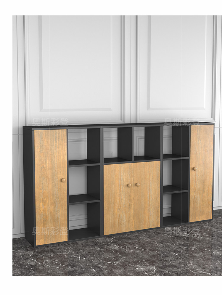 Книжный шкаф с твердым деревом с дверным шкафом на стене стены, фоновый шкаф, посадочный кабинетный шкаф Комбинированный гардероб