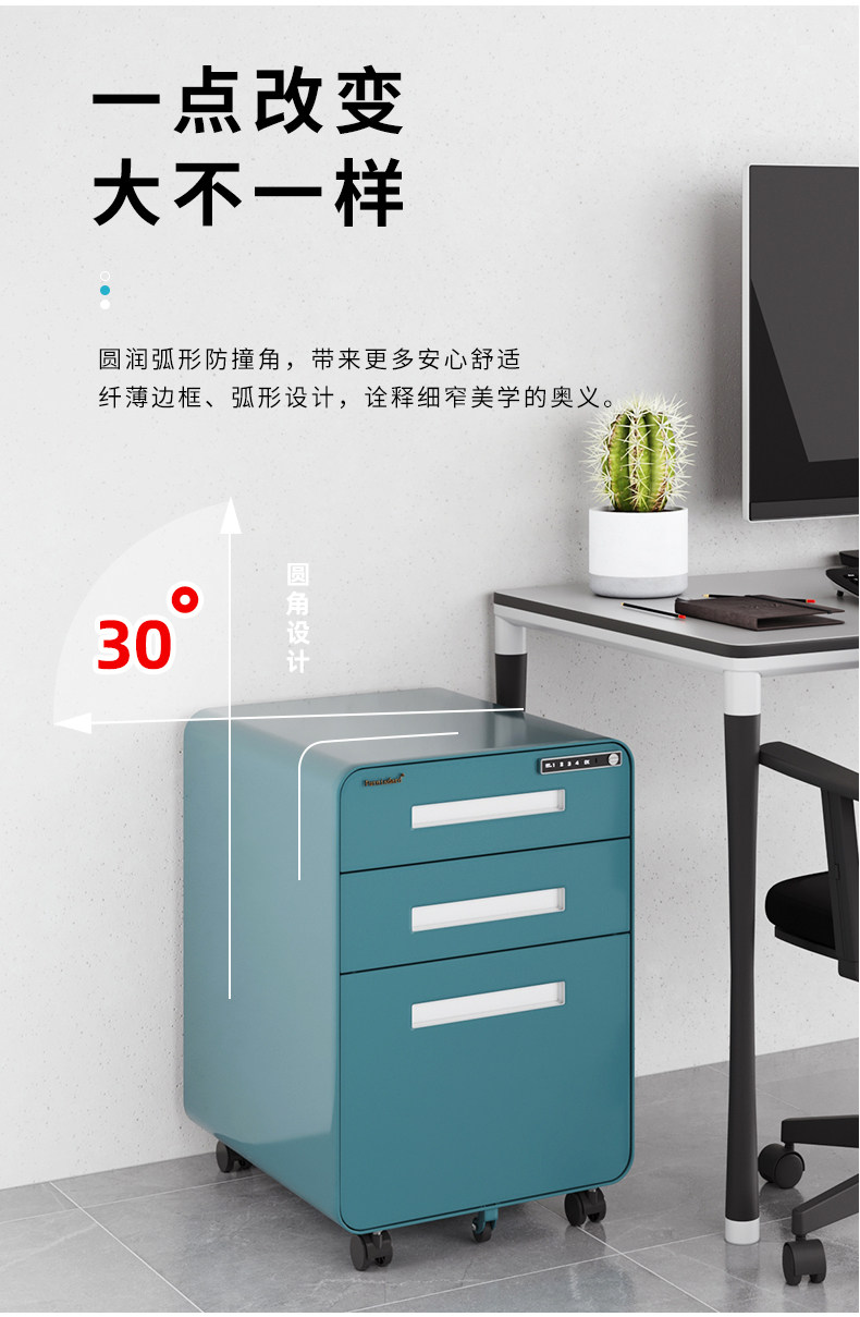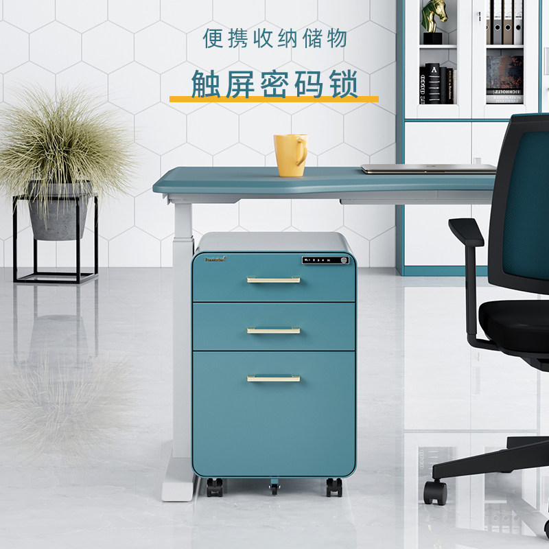 Электронный пароль активности шкафа офиса на рабочем столе трех ящиков с замок с мобильным стальным шкафом синий шкафчик