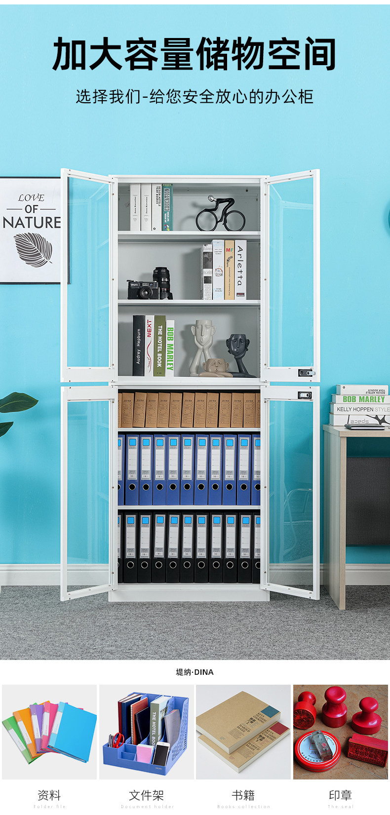 纯奢 Утолщенная блокировка пароля Файл шкаф в офисе файл шкаф стеклянная дверь с заблокированным архивным шкафом стальной книжный шкаф