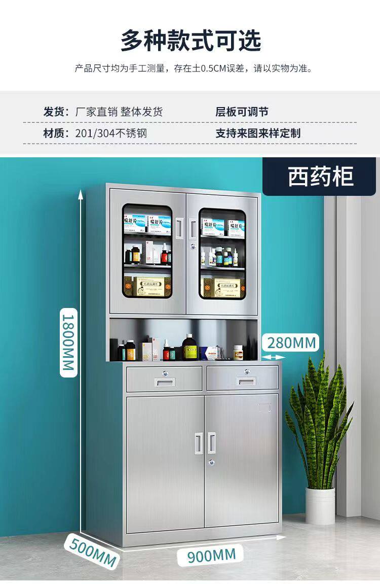 Картотека для хранения лекарств из толстой нержавеющей стали 304, медицинский стеклянный шкаф для инструментов, стерильный ящик, западная аптечка