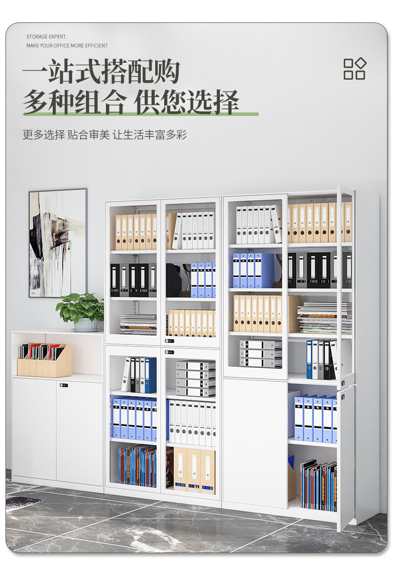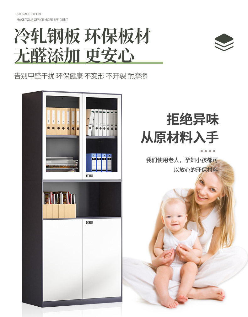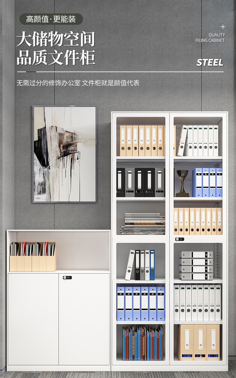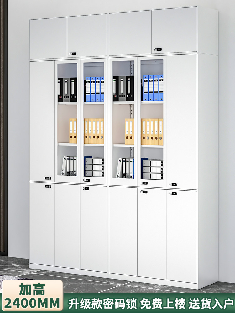 2M High File Cabinet Iron Leather Cabinet Glass Displen