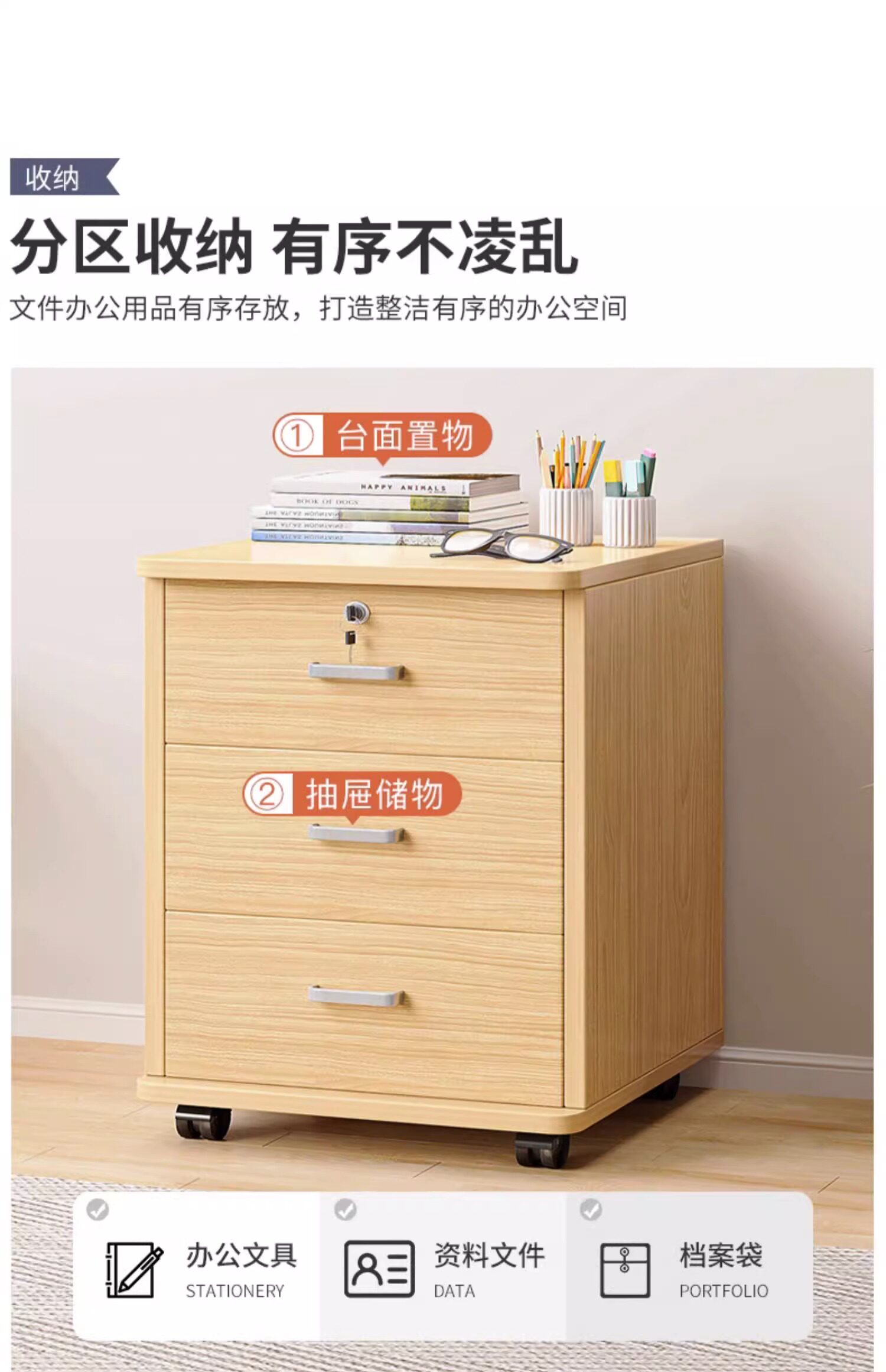 Офис офиса в шкафу файлов с шкафом для хранения шкафа для движения колес