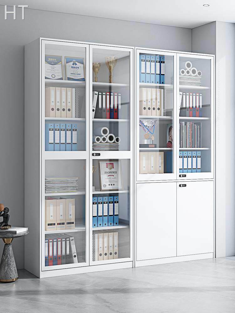 Стеклянный белый книжный шкаф для офиса для документов, ремень, коробочка для хранения, 2м
