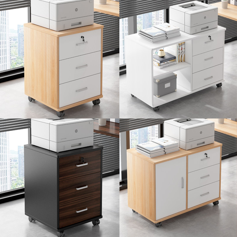 Файл шкаф в офисе с низким шкафом Деревянный ремень колес