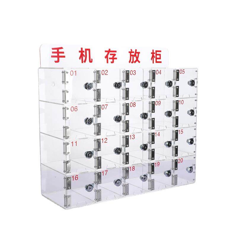 Источник акрилового шкафа для хранения мобильных телефонов с зарядными отверстиями Прозрачный шкаф для хранения хранилища с блокирующим резервуаром