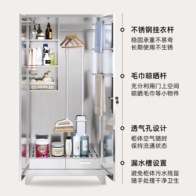 Шкаф для чистки из нержавеющей стали 304, шкаф для хранения чистящих средств для супермаркетов, водонепроницаемый, нержавеющий, шкаф для инструментов, экономичный