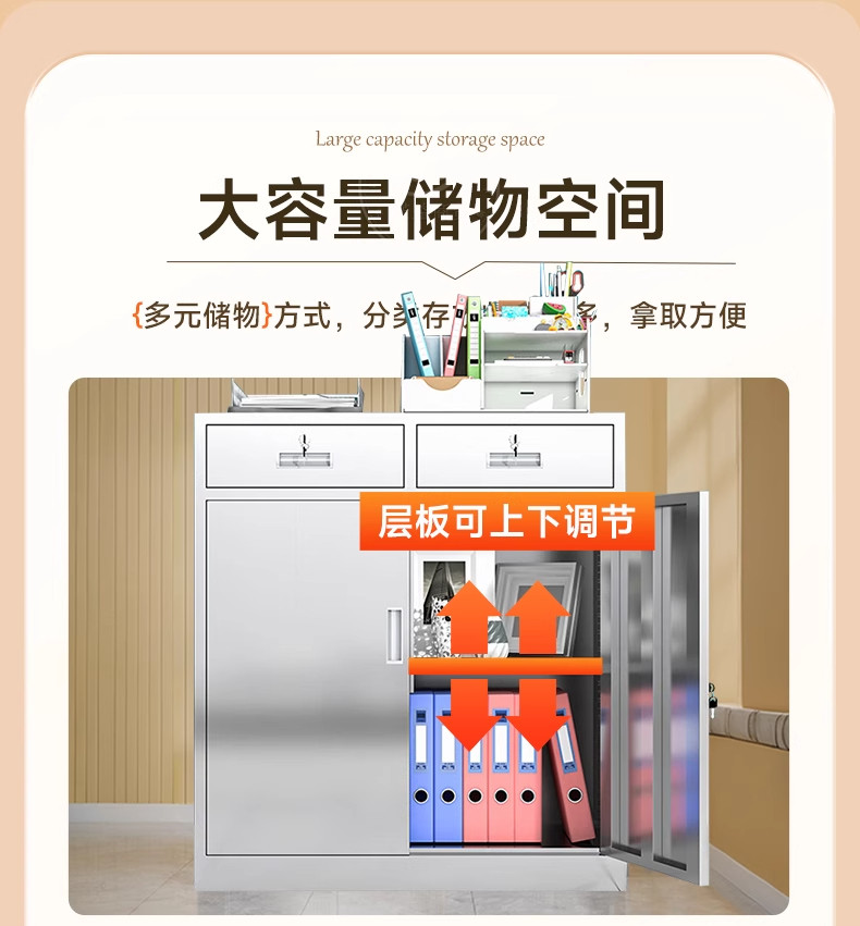 Шкаф для хранения из нержавеющей стали 304 с двумя ящиками, короткий шкаф для документов с перегородкой, шкаф для финансовых ваучеров, шкаф для хранения вещей