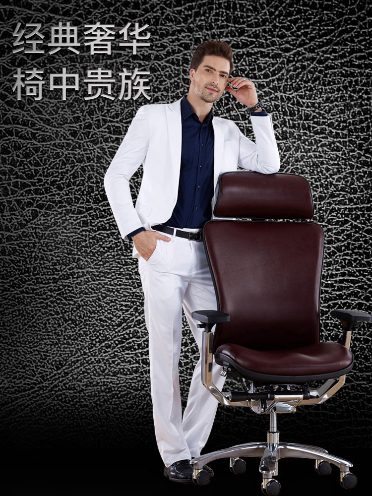 Подал высокий импортный импортный стул босса Cowhide Эргономичный компьютерный стул офис Домохозяйство Кожаное кресло удобно