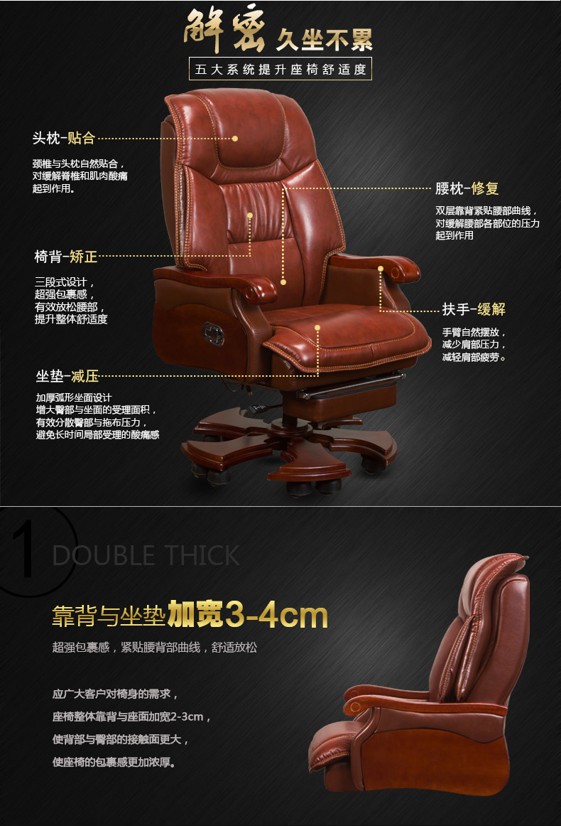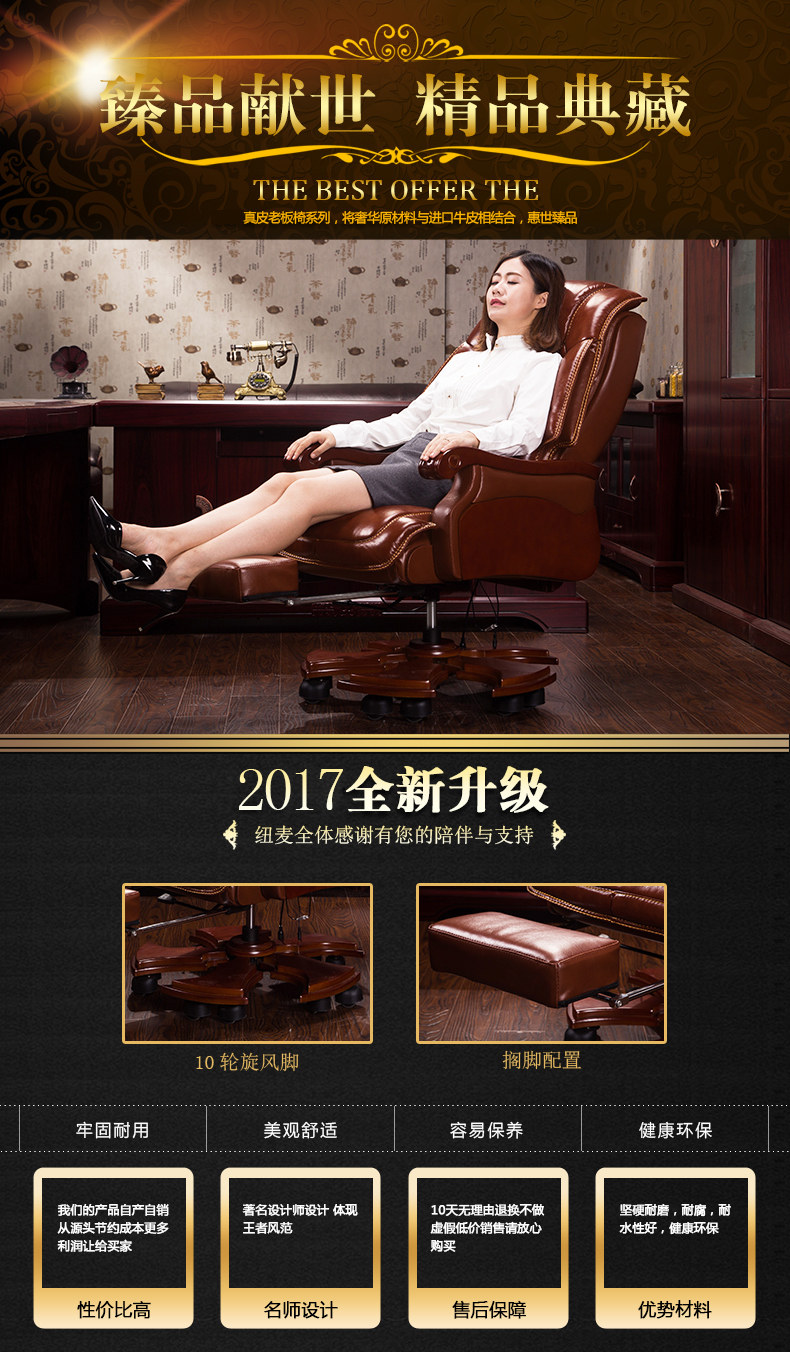 纽麦 Домохозяйство кожаного босса офисное кресло массаж может лежать на стуле Компьютерной коров