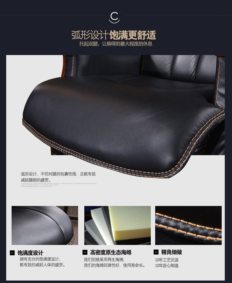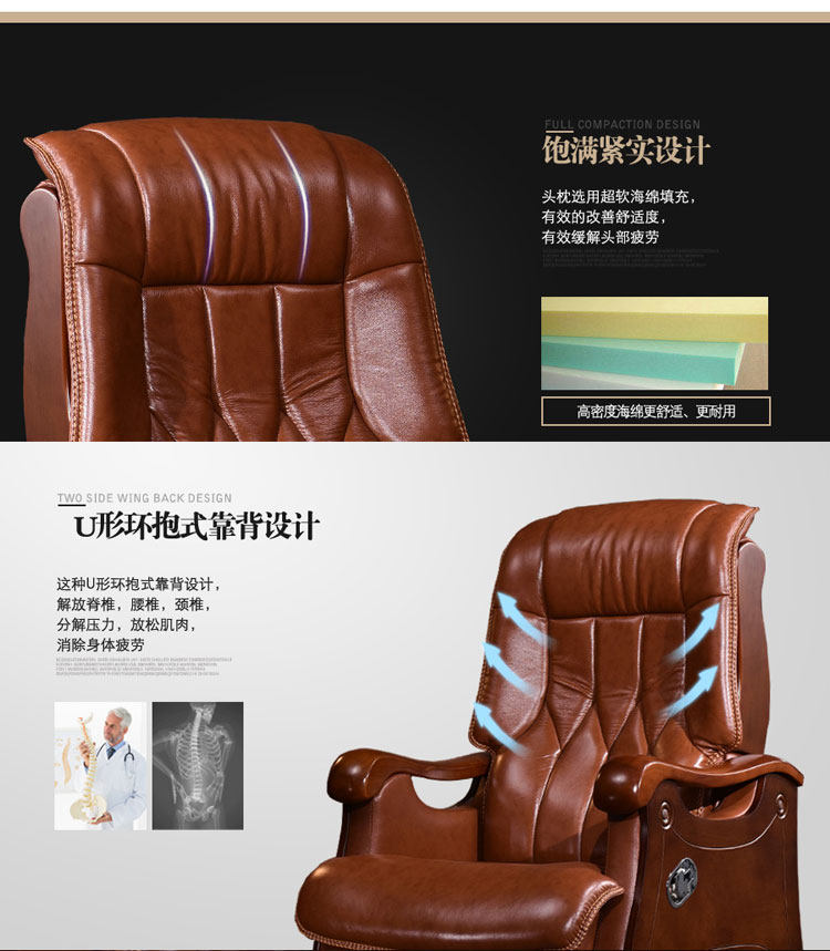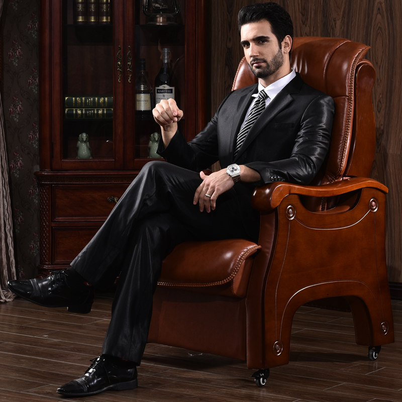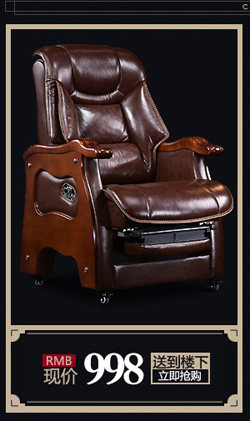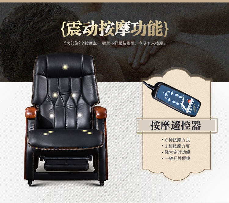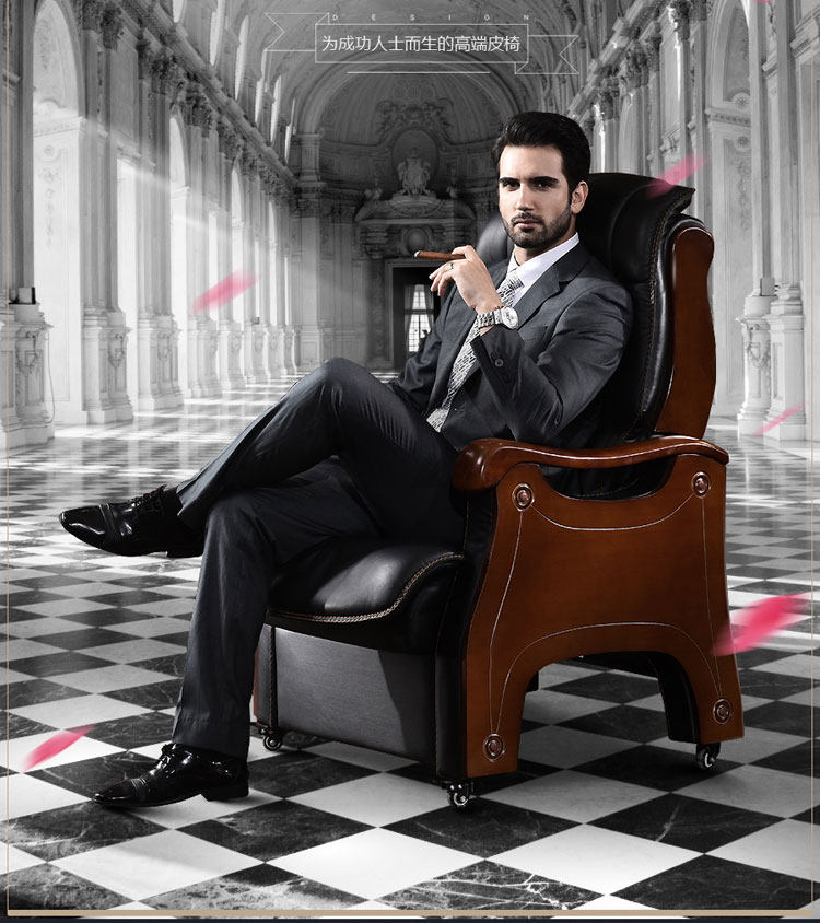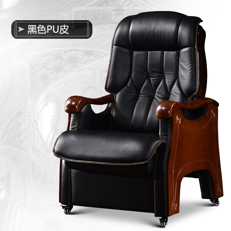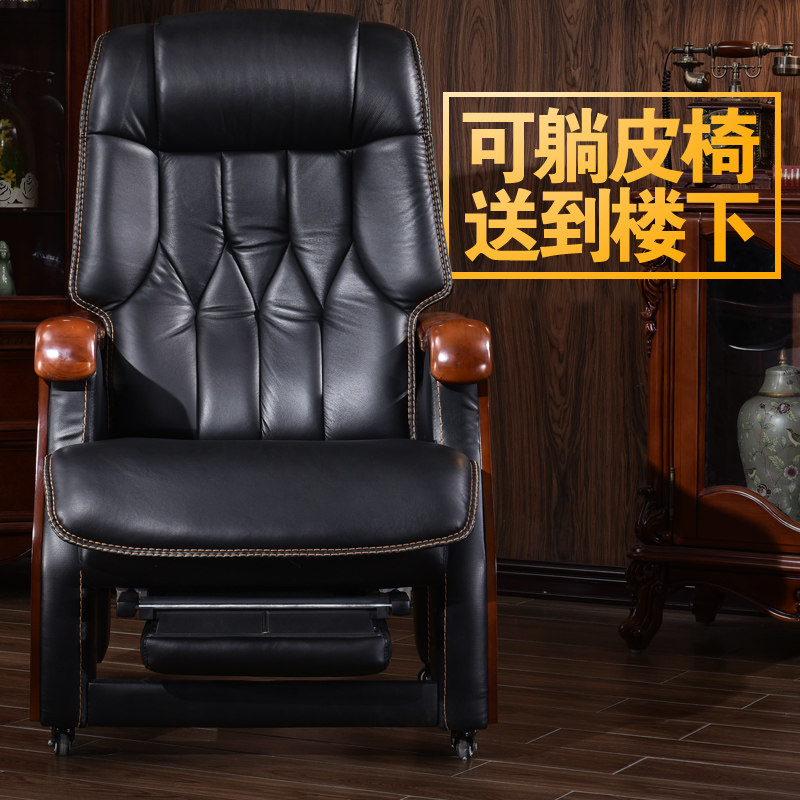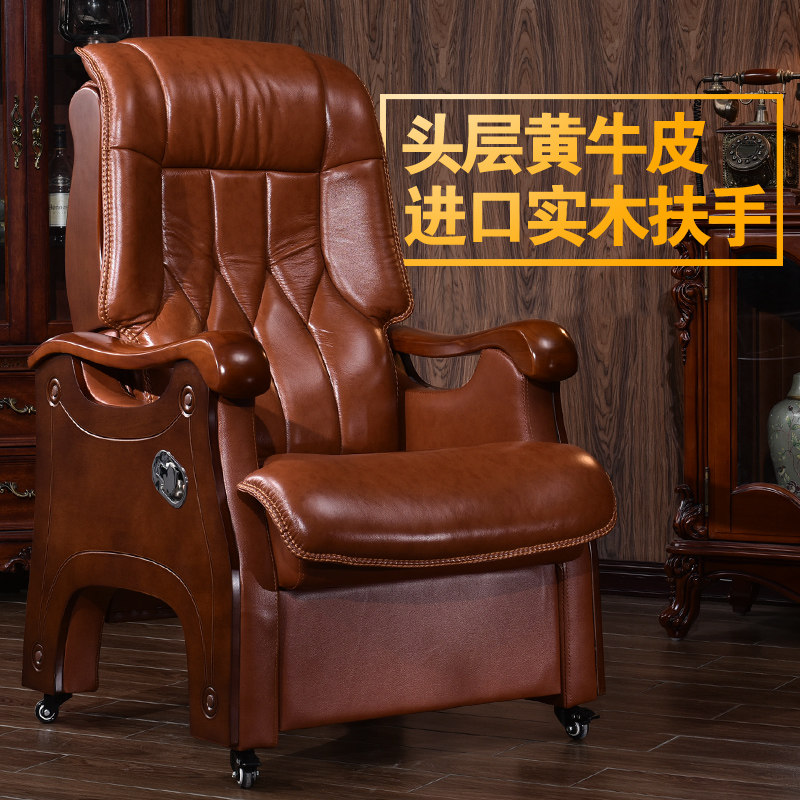 Стул босса Кожа с четырьмя легкими деревянными креслами может лечь и помассировать головное слое -коровье офисное кресло компьютерное кресло домой