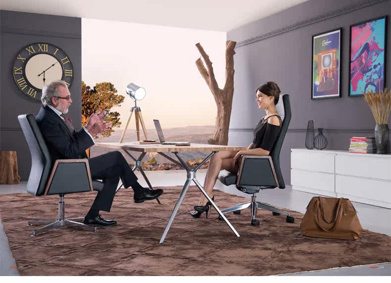 艾诗奈尔 Импортированный кожаный стул Boss Большой бандша простая современная модная офисное кресло -стул Пресс -стул супервайзер