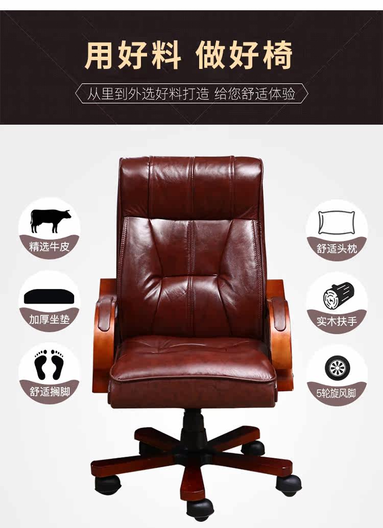 Подлинный кожаный босс стул с твердым древесным креслом Компьютерная стул Домохозяйство поднятие Большого класса Столскую штрих