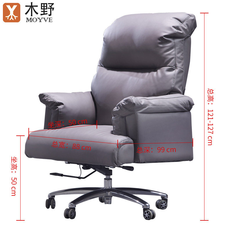 木野 Может лечь кожаный стул Boss Толстый офисный стул, домашний компьютерный стул, Xiaoyao Business Cowhide Big Chair