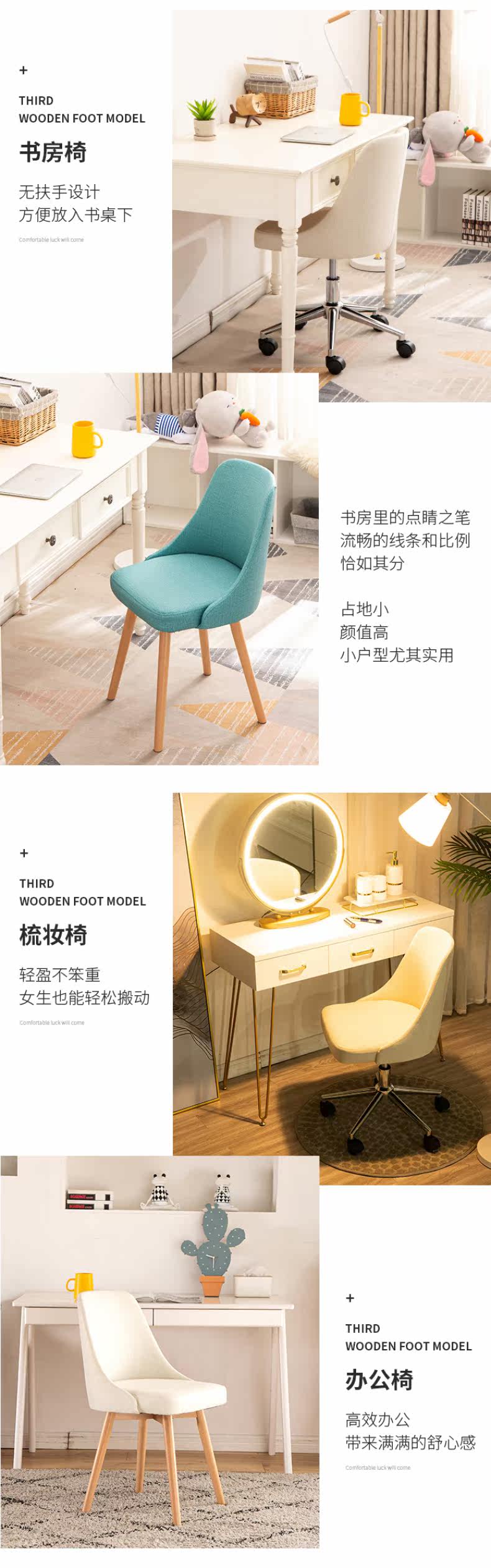 Учите стул Студент Студент Деревянный мусора простых макияж Стул Стул Северный отдых досуг домашний компьютерный стул