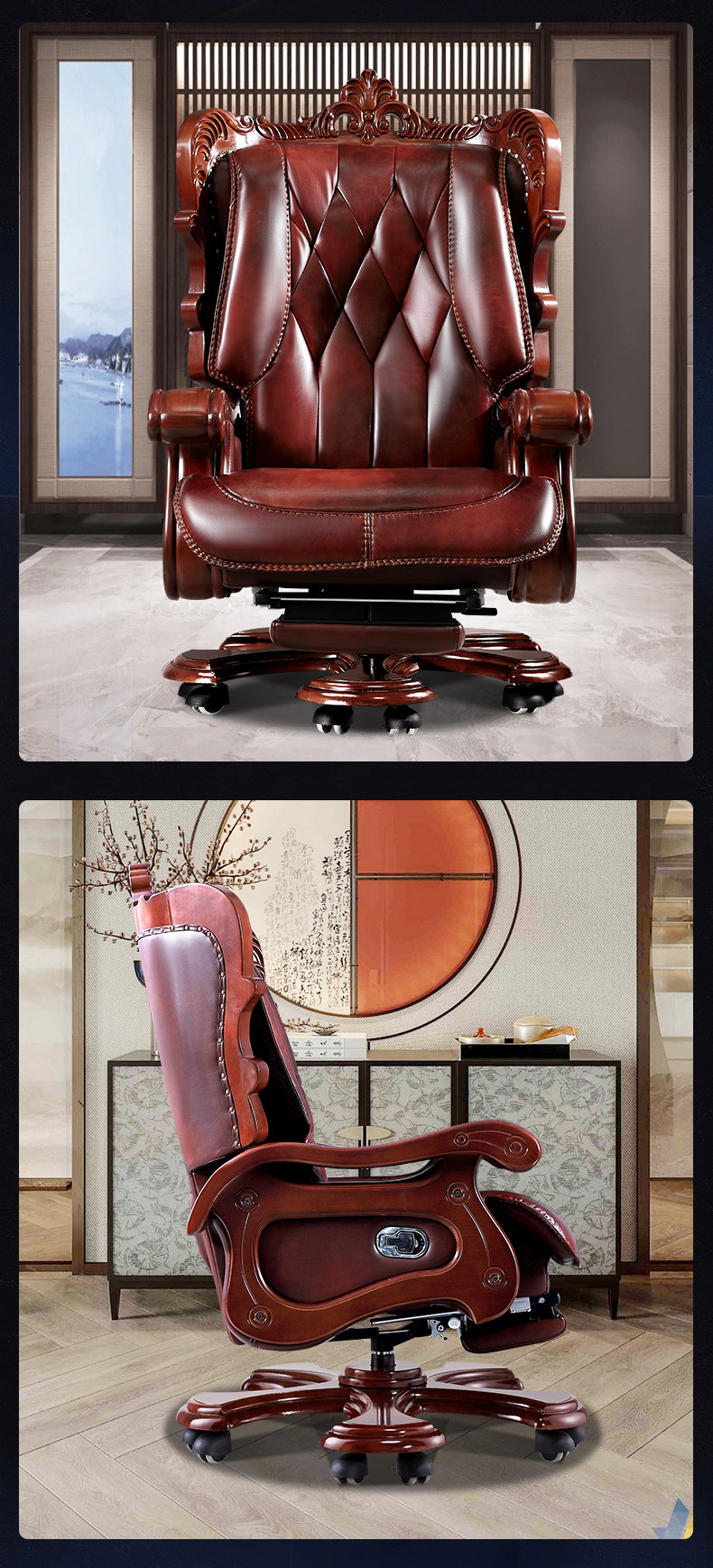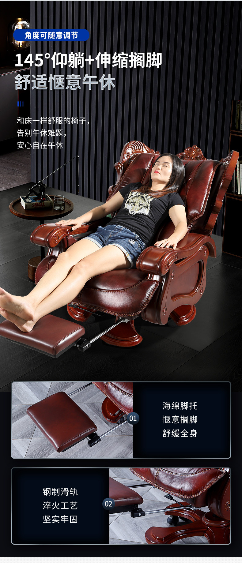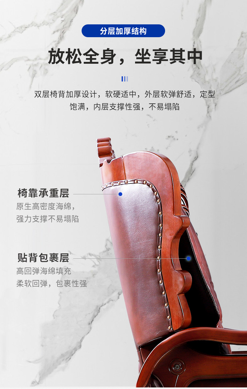 Американская резное кожаное изящное дерево, лежащее компьютерное кресло