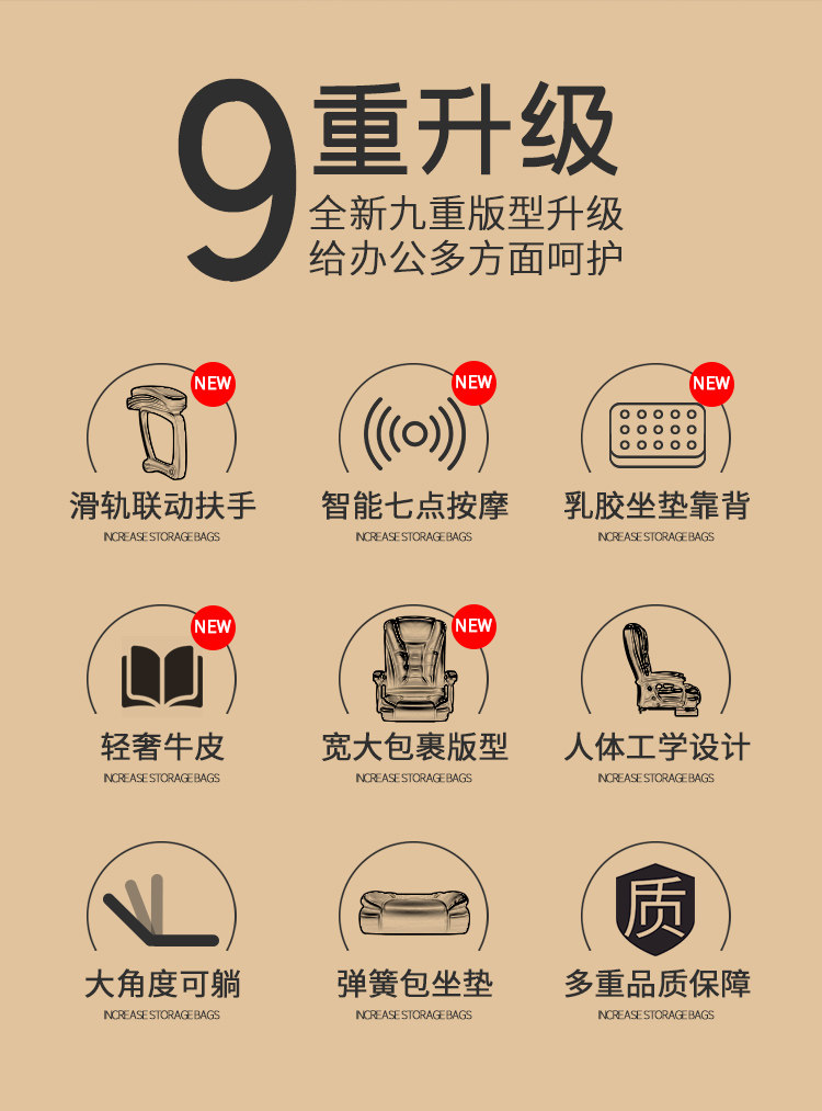 - Обновлен до кремового цвета + пружинная сумка + экологически чистая кожа + полный латекс + подставка для ног (формованная губка)