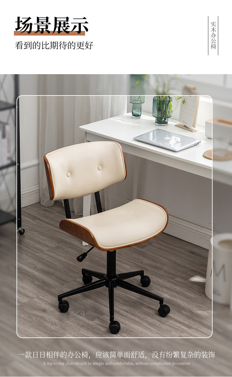 Легкий роскошный компьютерный стул для дома, из цельного дерева, для маленькой спальни, для учебы, сидячий вращающийся стул, сиденье с подъемником, удобный офисный стул