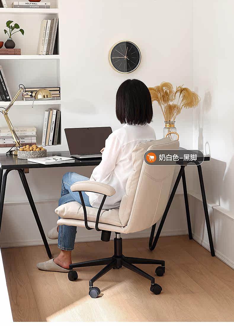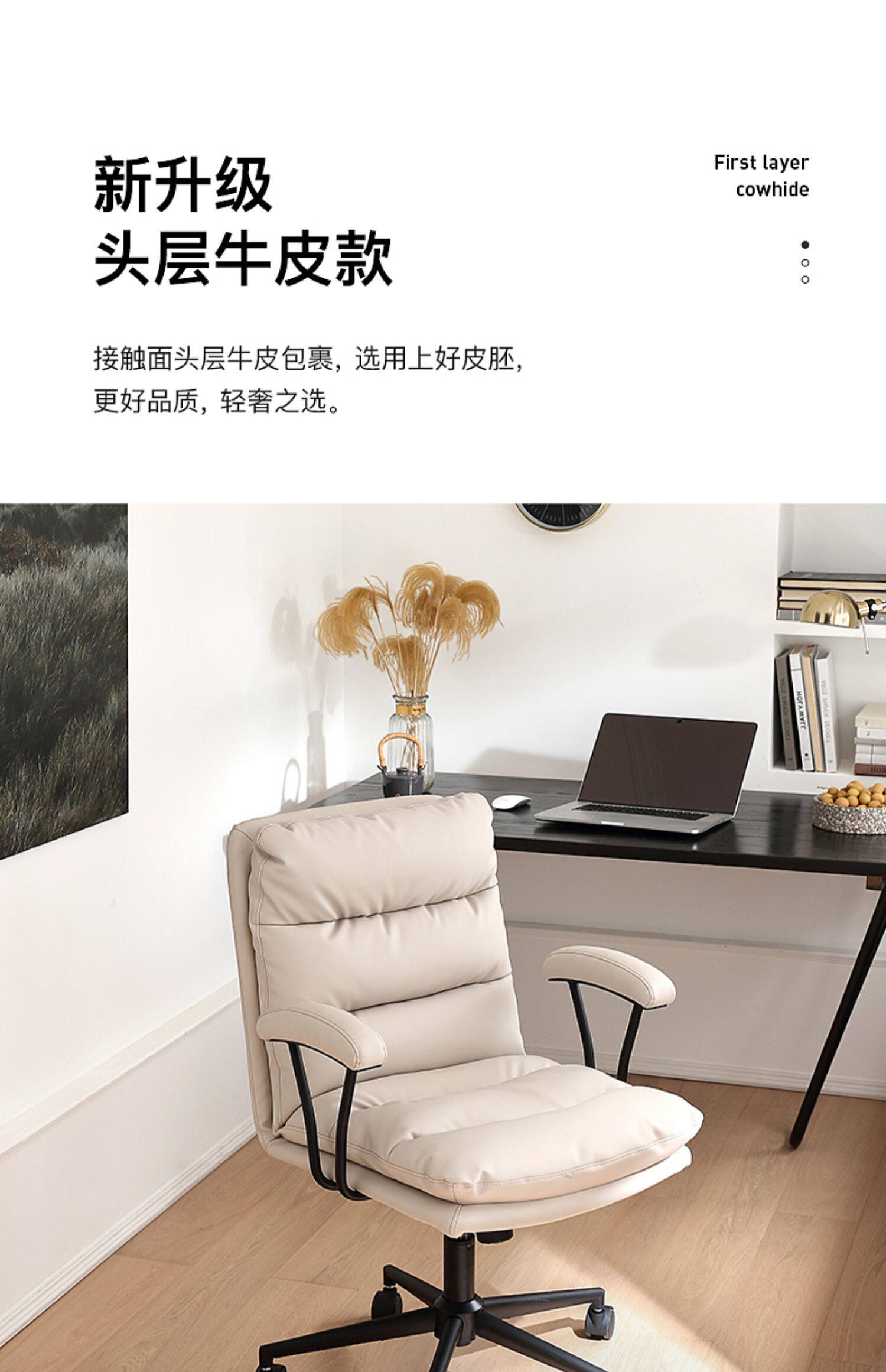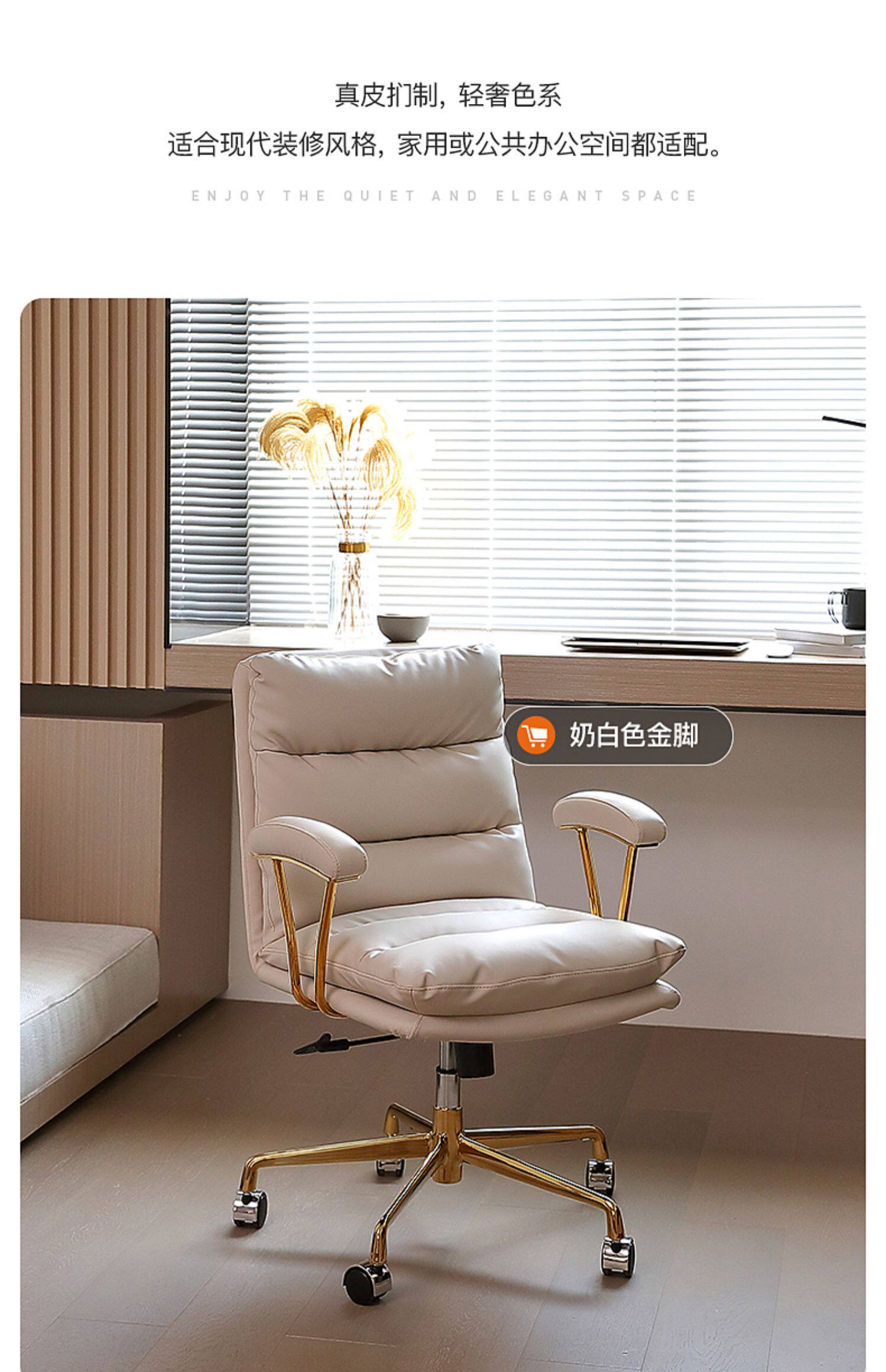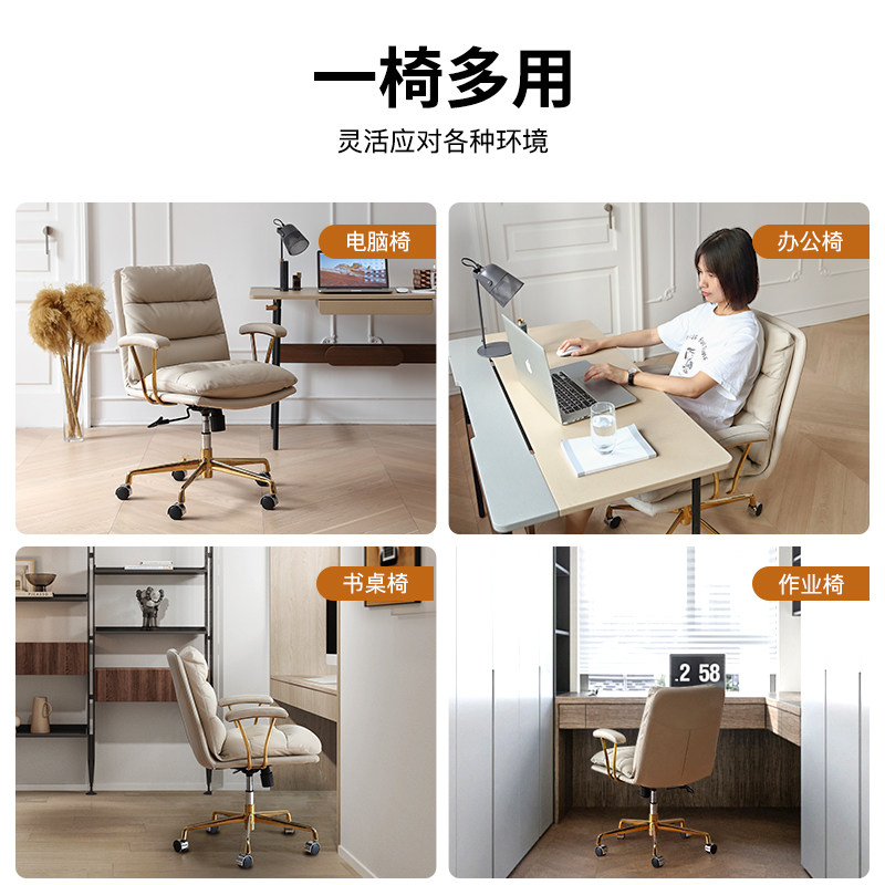 Кожаный компьютерный стул Gu Quan Комфортный домашний эргономичный офисный стул на долгое время сидеть в спальне Light Luxury Study Stod