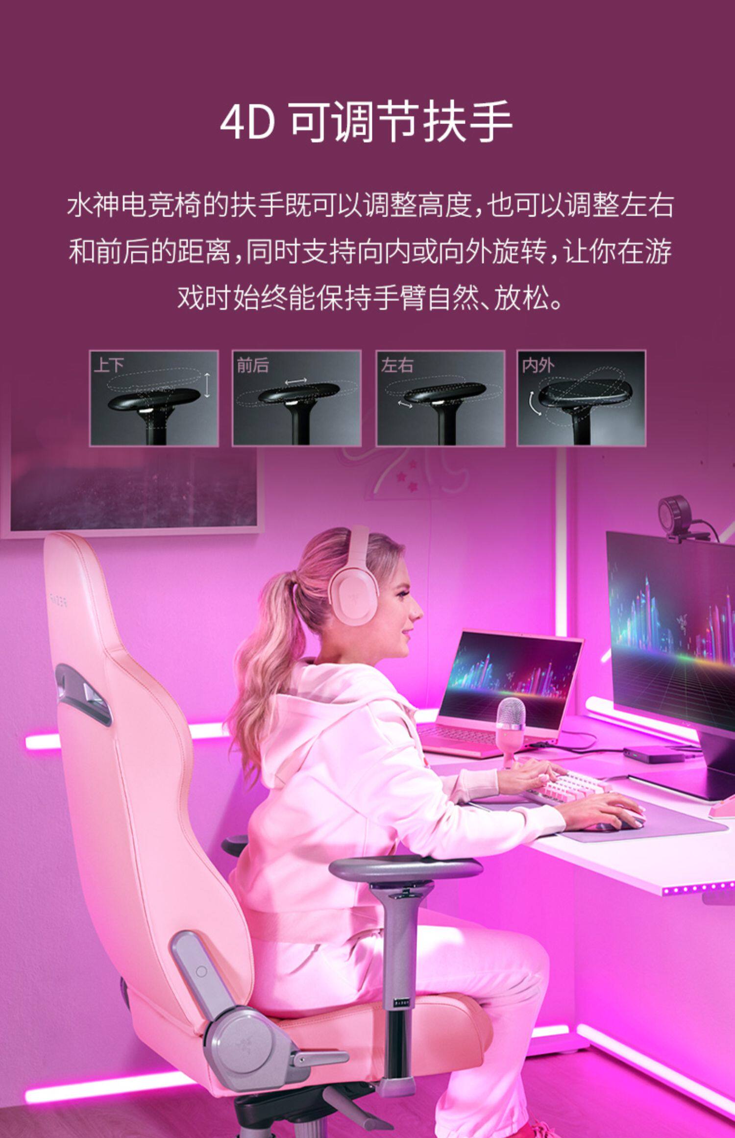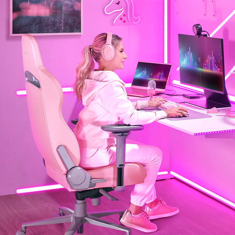Razer Razer Razer Shinyan Gaming Pink Crystal Enki Ergonycom Comfort Comport Comport Game Seat 4D Armrest