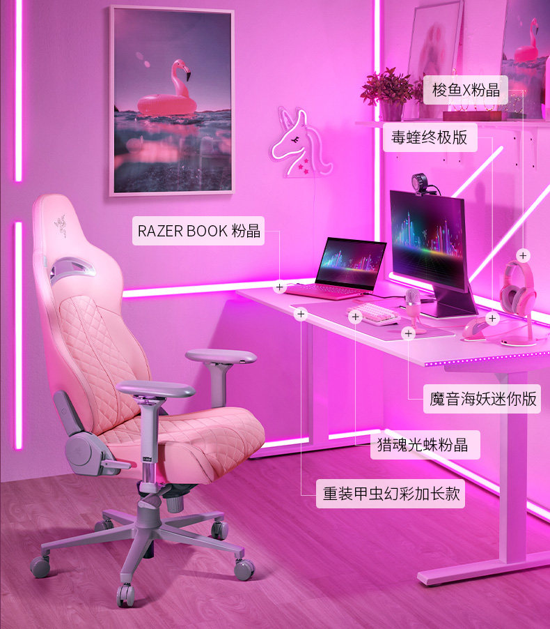 Игровой кварц, комфортное кресло, розовый ноутбук для домашнего использования