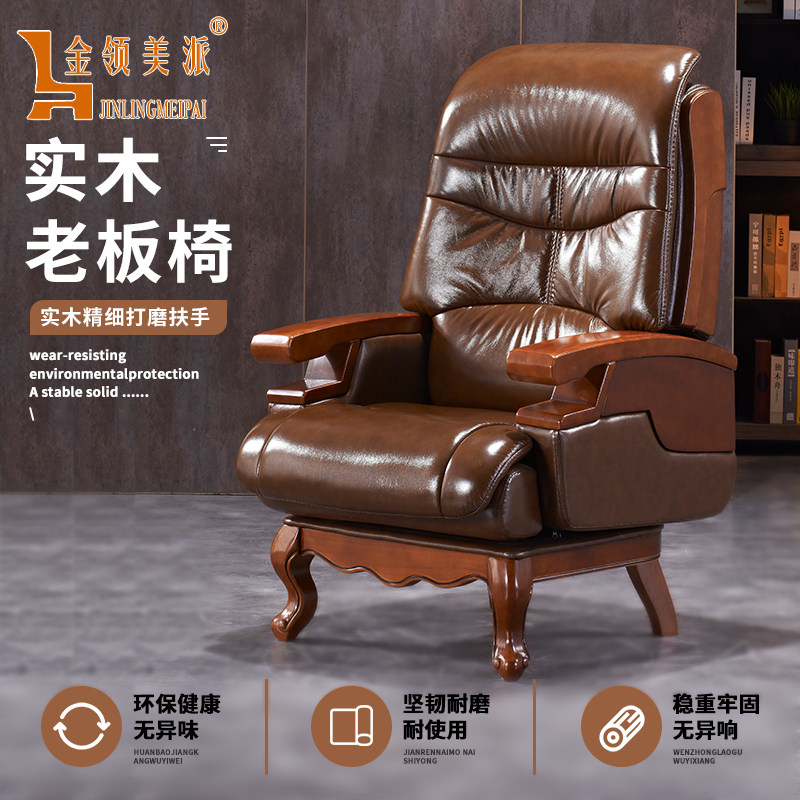 Стул с твердым деревом боссом фиксированные ноги импортированные кожа