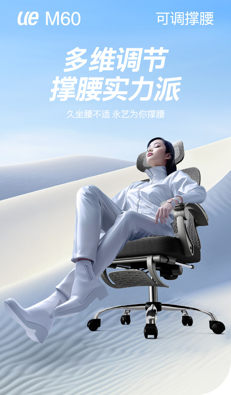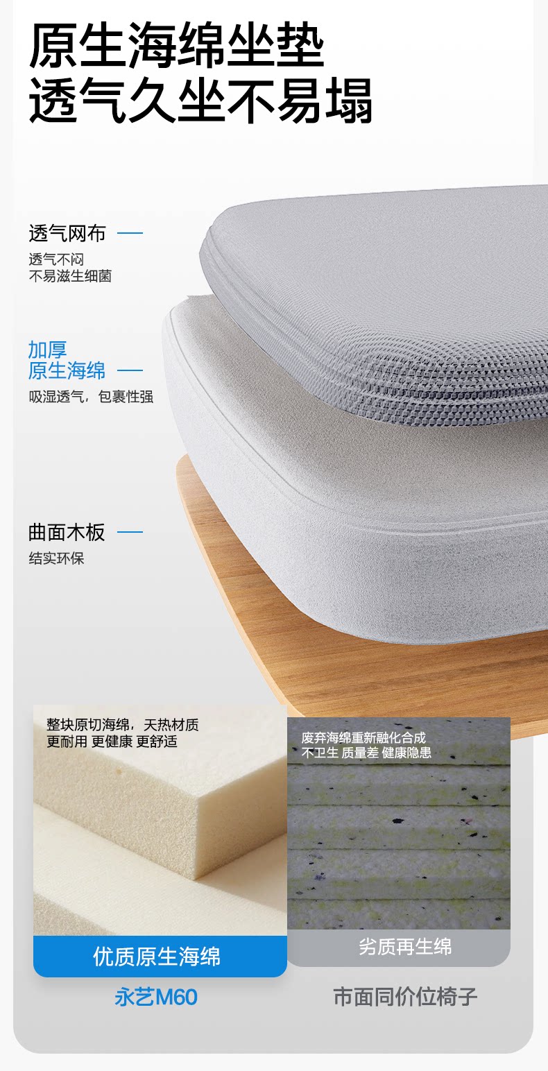 永艺 Поддержка талии M60 Эргономичное кресло для компьютерного кресла для долгого приема удобного домашнего офисного кресла вращается и поднимает учебное кресло