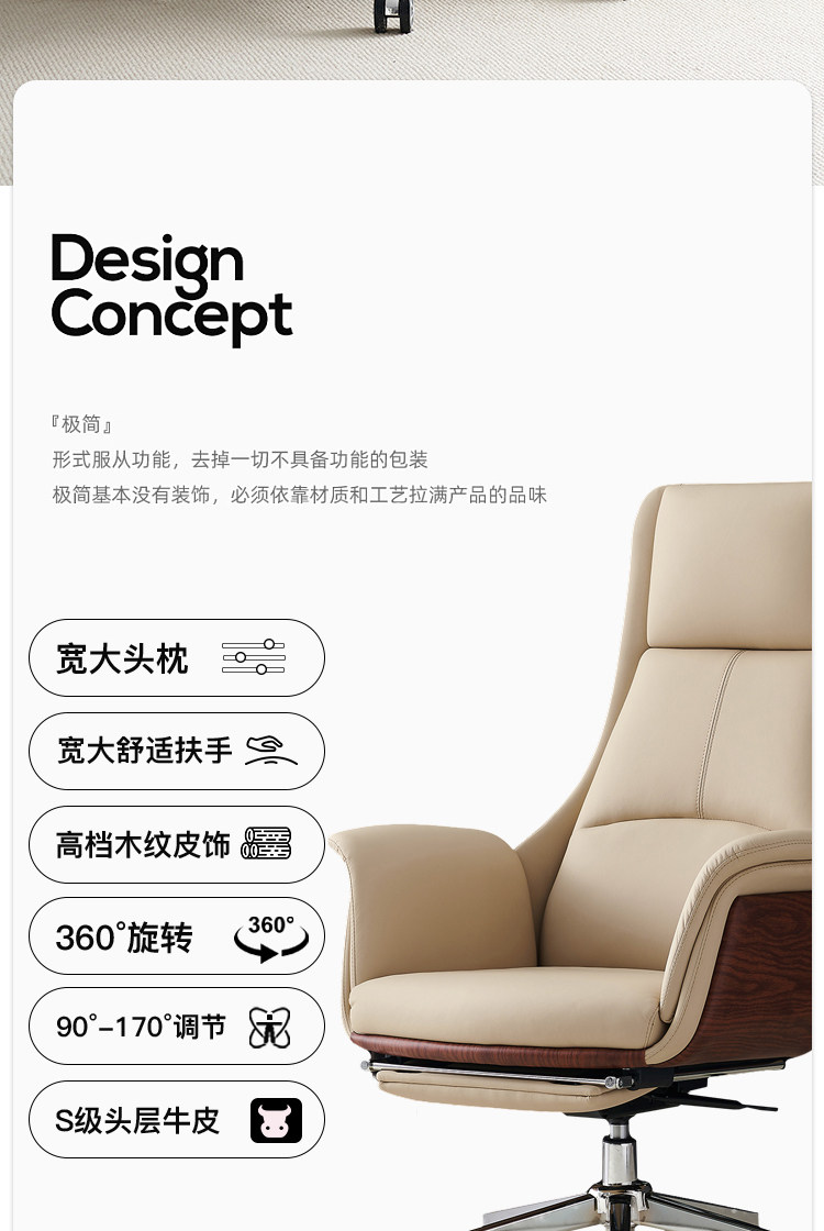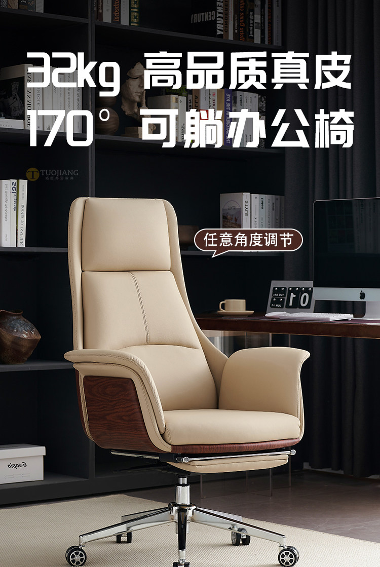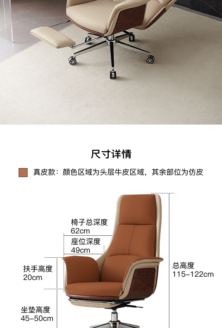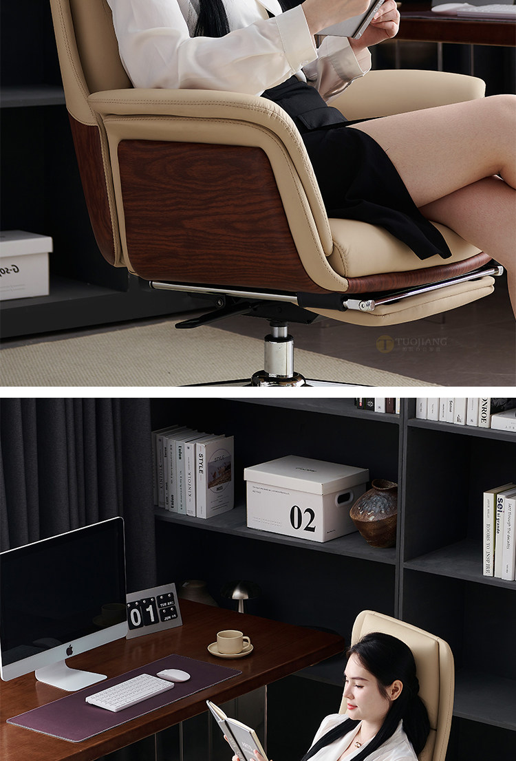 Простой стул Boss Подлинный кожаный офис, лежащий на деловом стуле Большого класса кресло, сидя на долгое время компьютерное кресло для дома спальня