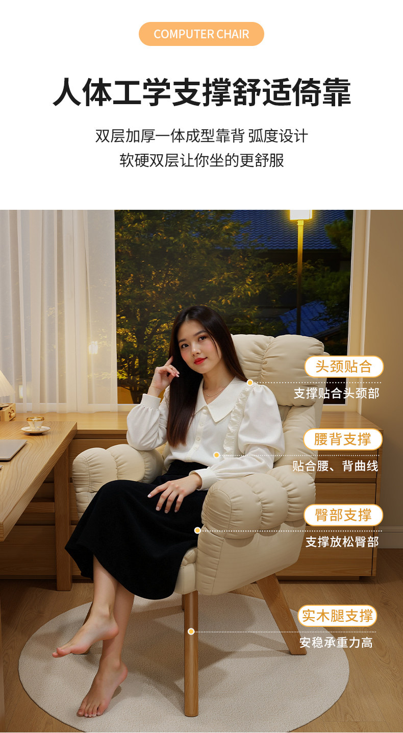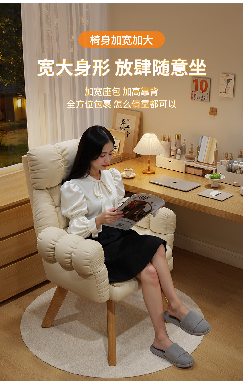 Ленивый диван, компьютерный стул, ножки из массива дерева, вращающийся, настольный стул для домашнего обучения, удобный, для длительного сидения и отдыха, стул со спинкой