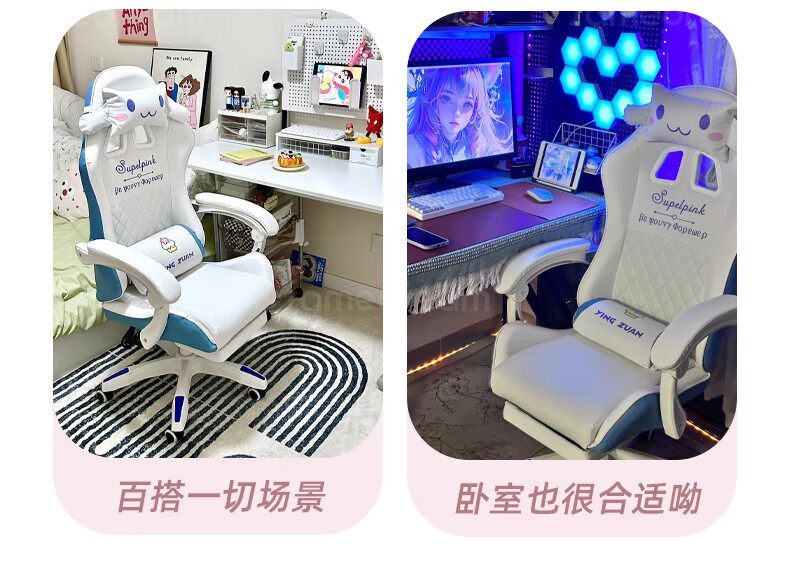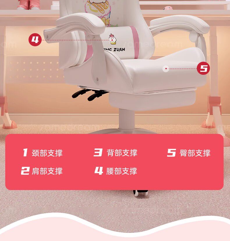 Эргономист стула для киберспорта Sanmeng использует его, чтобы девочки могли сидеть и играть в игры на компьютерных стульях в общежитиях колледжей в течение длительного времени.