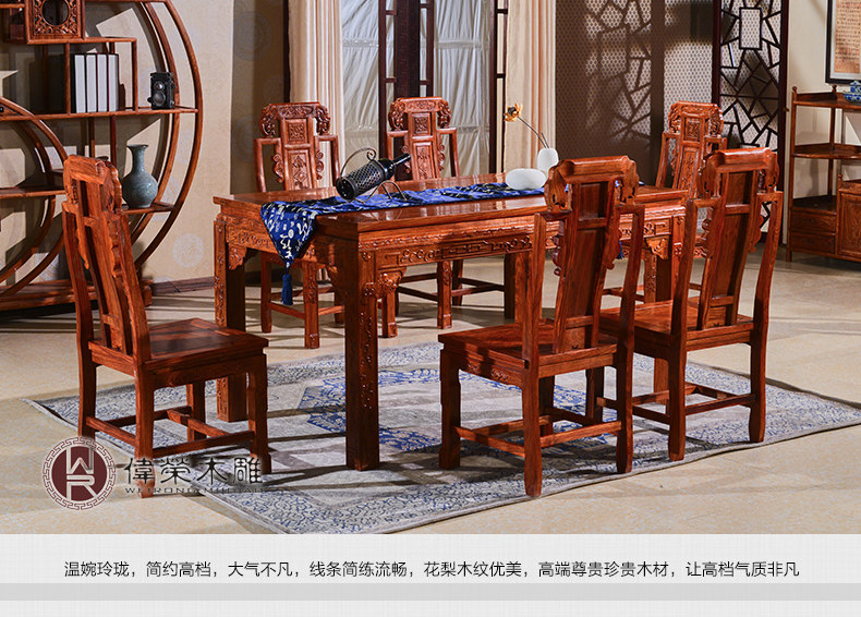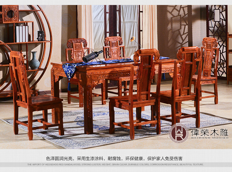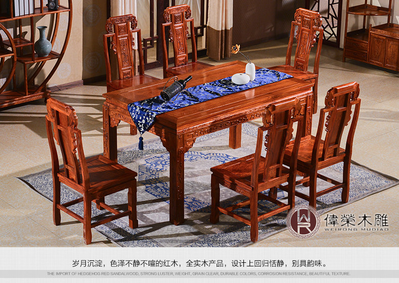 Вейрунг китайский стиль сплошной древесина прямоугольный обеденный стол и стул Комбинированный розовый дерево ежа ежа розовое дерево