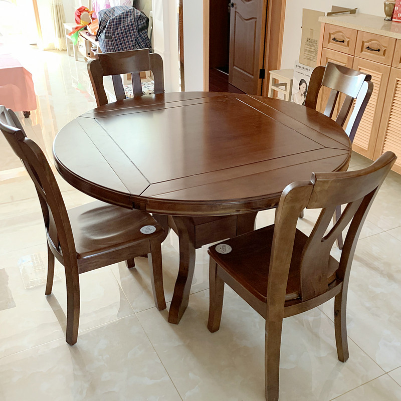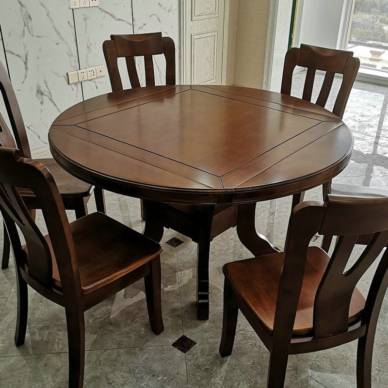 Новый китайский стиль All -Solid деревянный обеденный стол домохозяйный круглый круглый круглый складной квадратный стол становится большим круглым столом многофункциональным двойным двойным таблицей