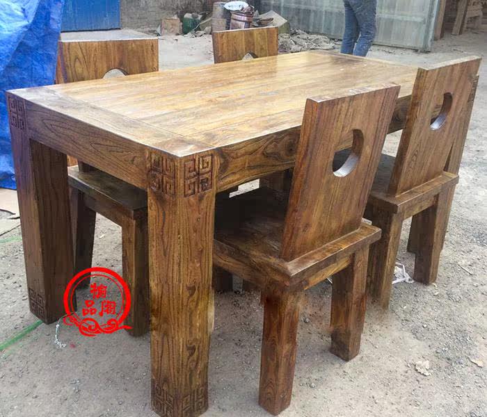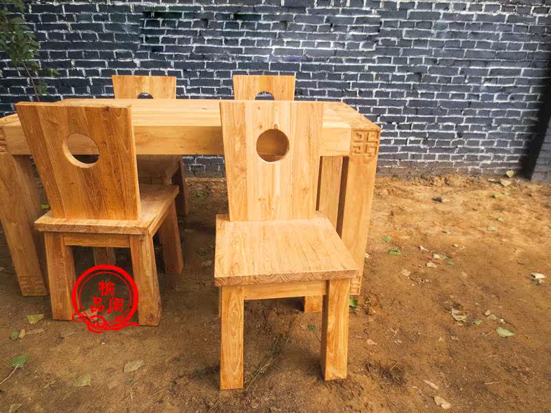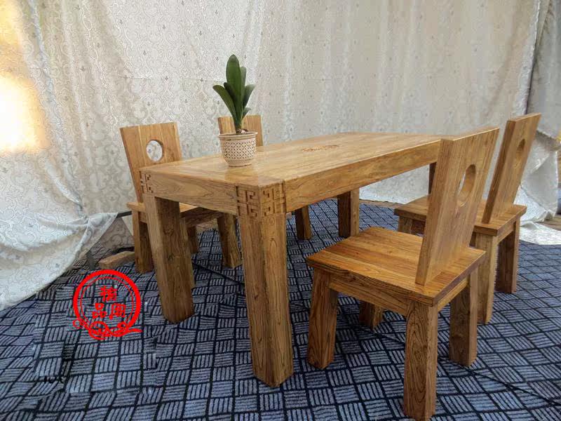 Обеденный стол из старого вяза, чайный столик из цельного дерева, простая комбинация стола и стула в современном китайском стиле, оригинальный экологический журнальный столик по индивидуальному заказу.