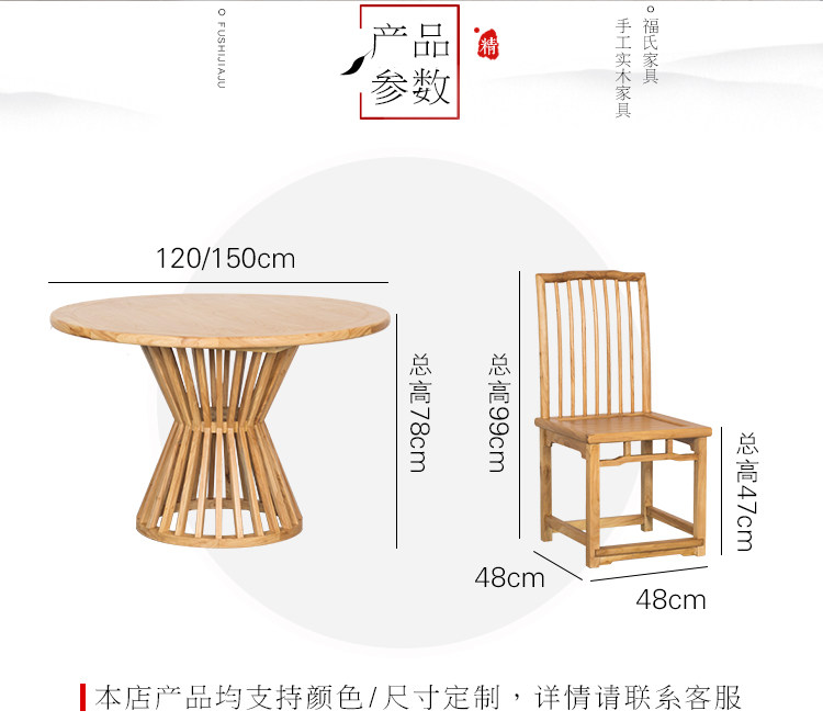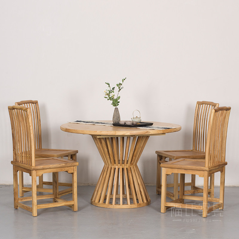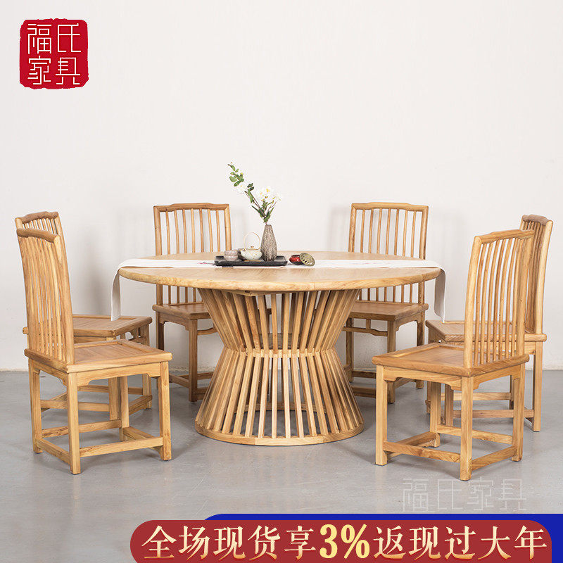Новый китайский круглый обеденный стол и стулья, современный и простой круглый обеденный стол из старого вяза, чайный столик в стиле дзен, стол для переговоров в гостиничном клубе