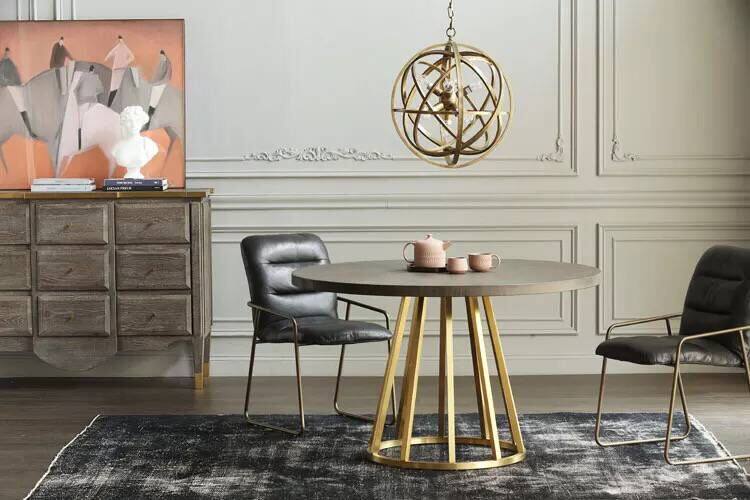 Нордические ретро -таблетки для обсуждения столов из железных кафе с твердым деревом американского стиля со столами и стульями. 4 человека используют маленькие круглые столы