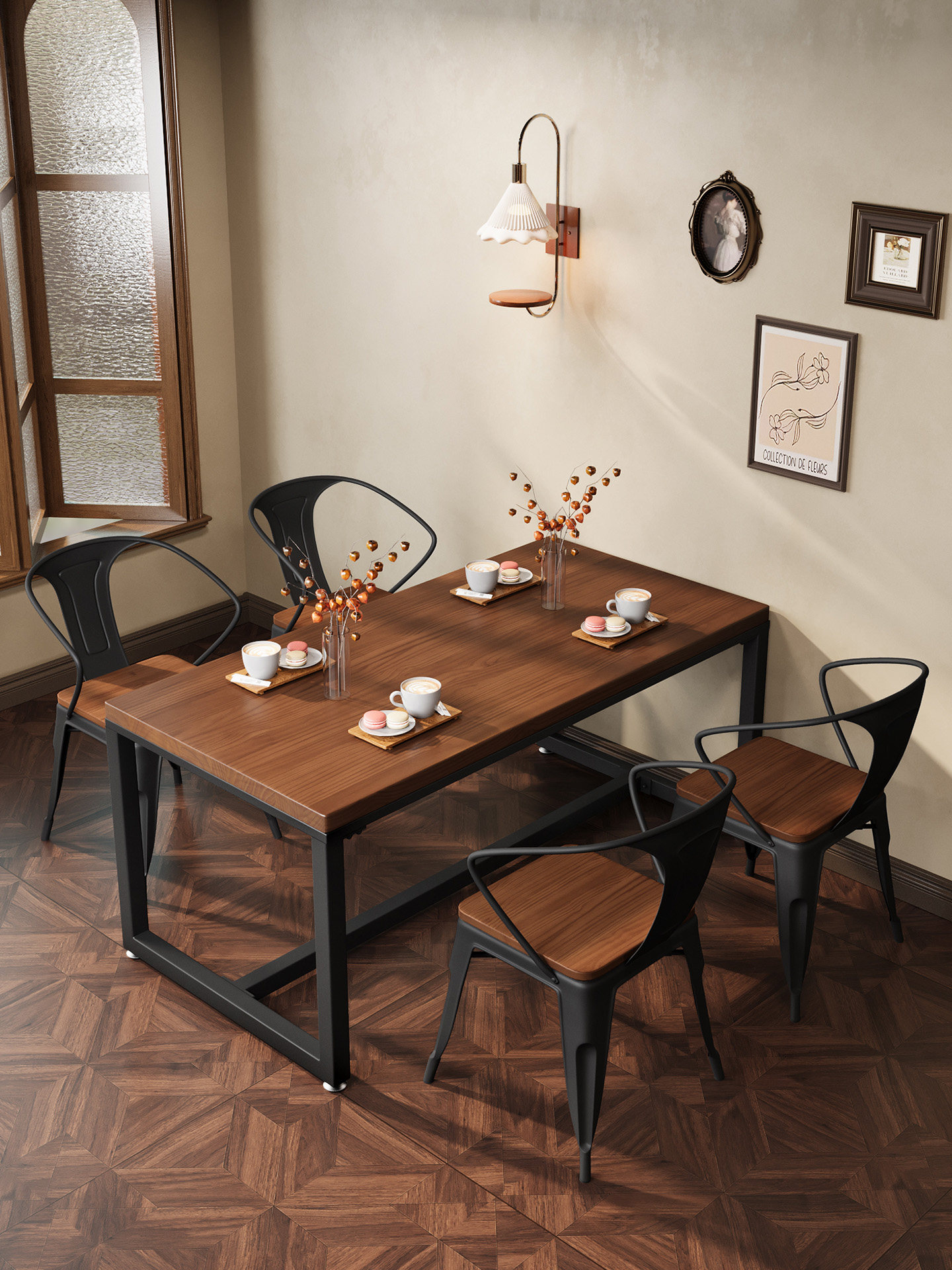 Средневековый стиль, железное искусство, твердая древесина, кафе, ресторан, магазин лапши, бар, западный ресторан, отель, коммерческий обеденный стол и стул, комбинация