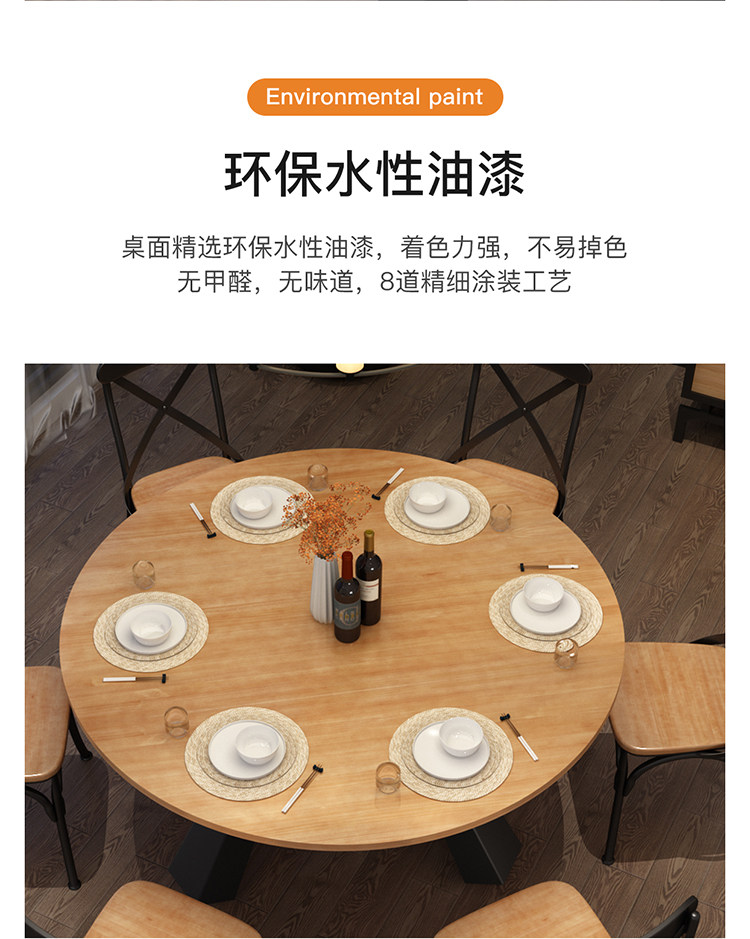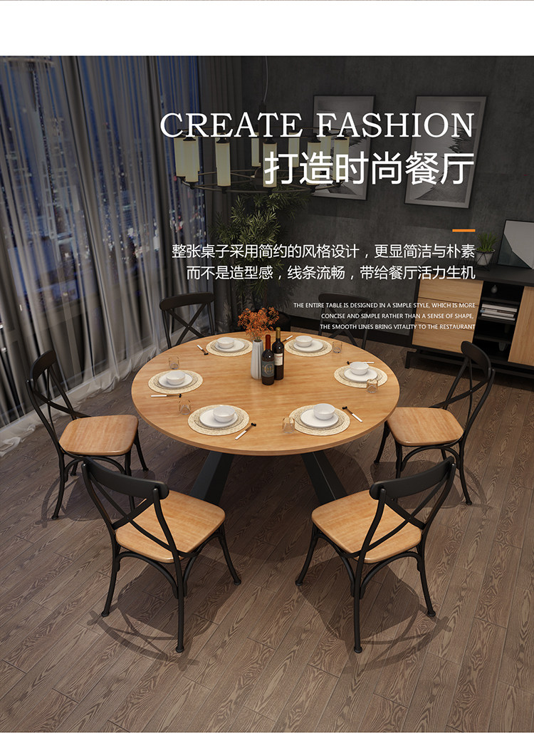 Обеденный стол и стул Комбинированный железо с твердым деревом Большой круглый столик, круглый стол, круглый дом