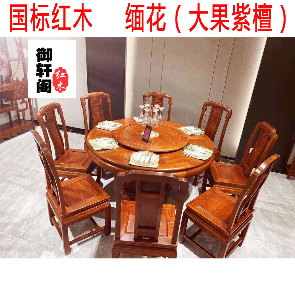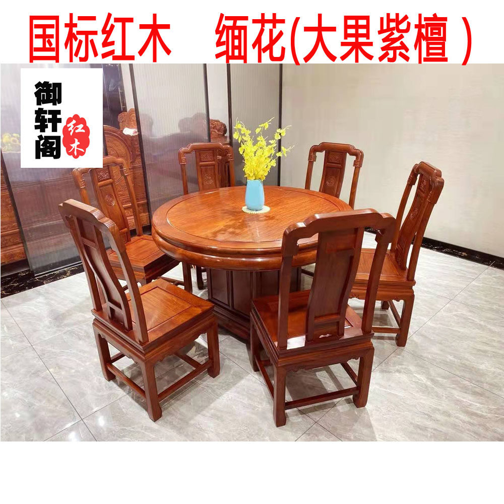 Семь -летний магазин 13 цветов крупного фруктового розового дерева национальный цвет Tianxiang круглый обеденный стол бирманский цветок прямоугольный стол цветок