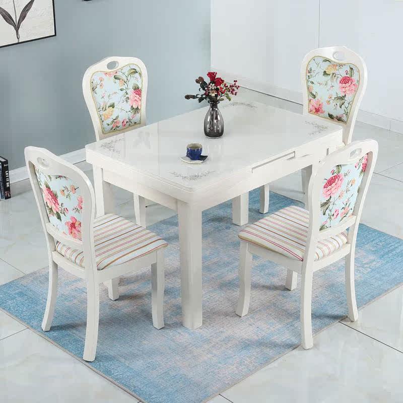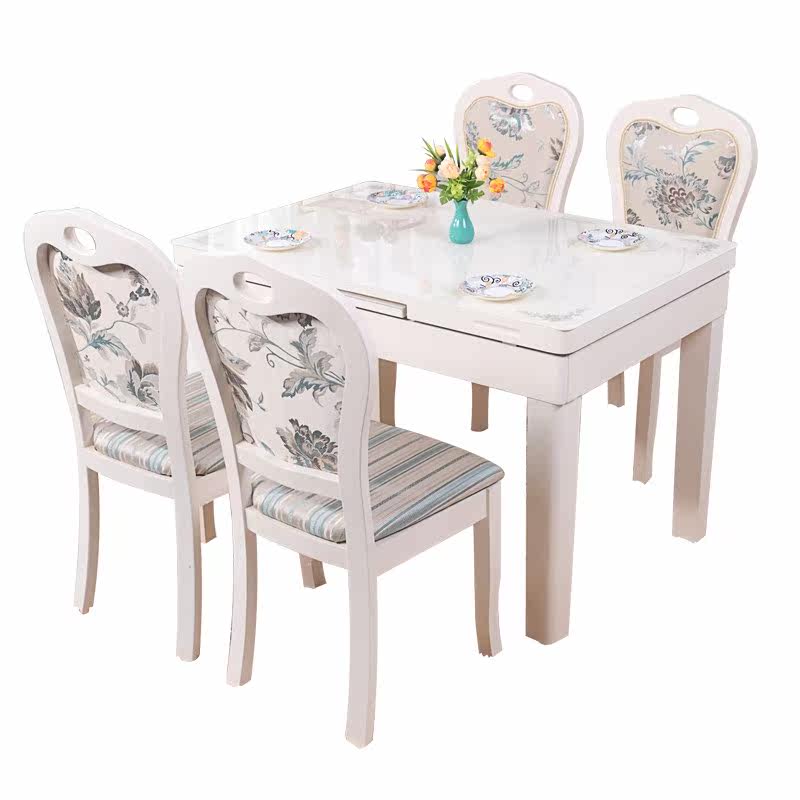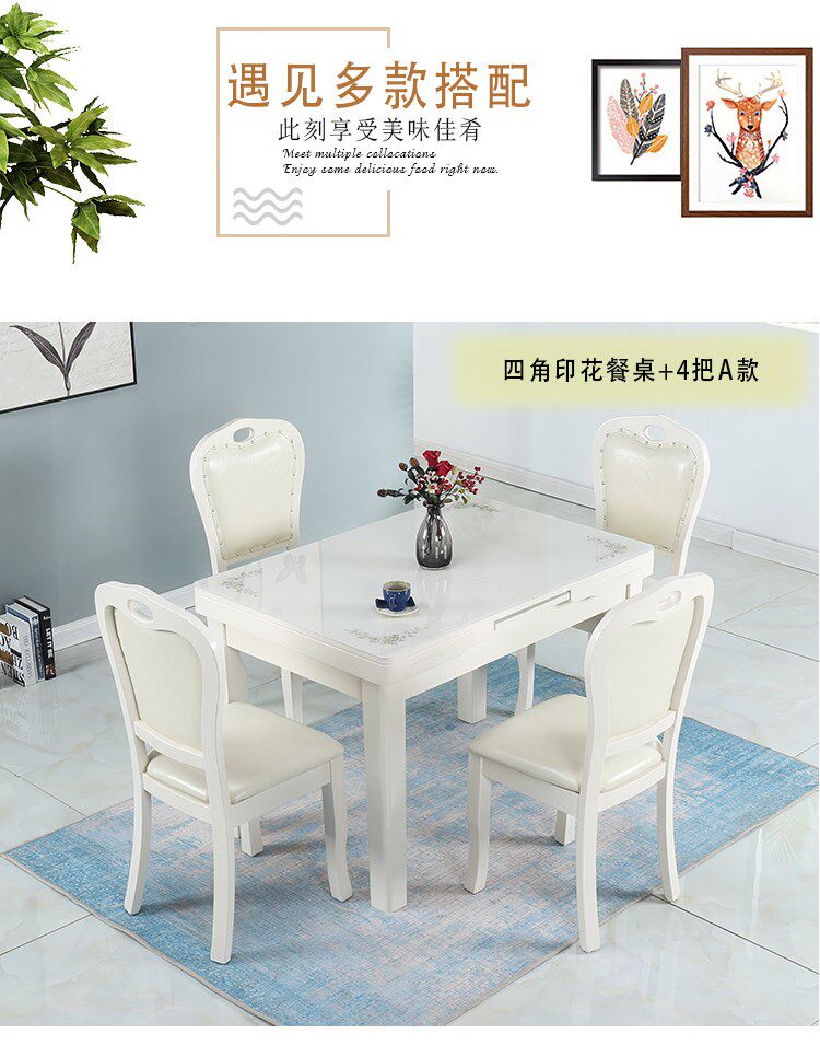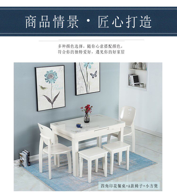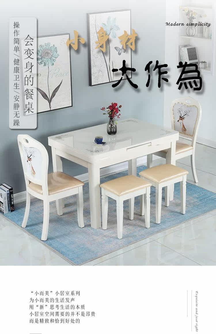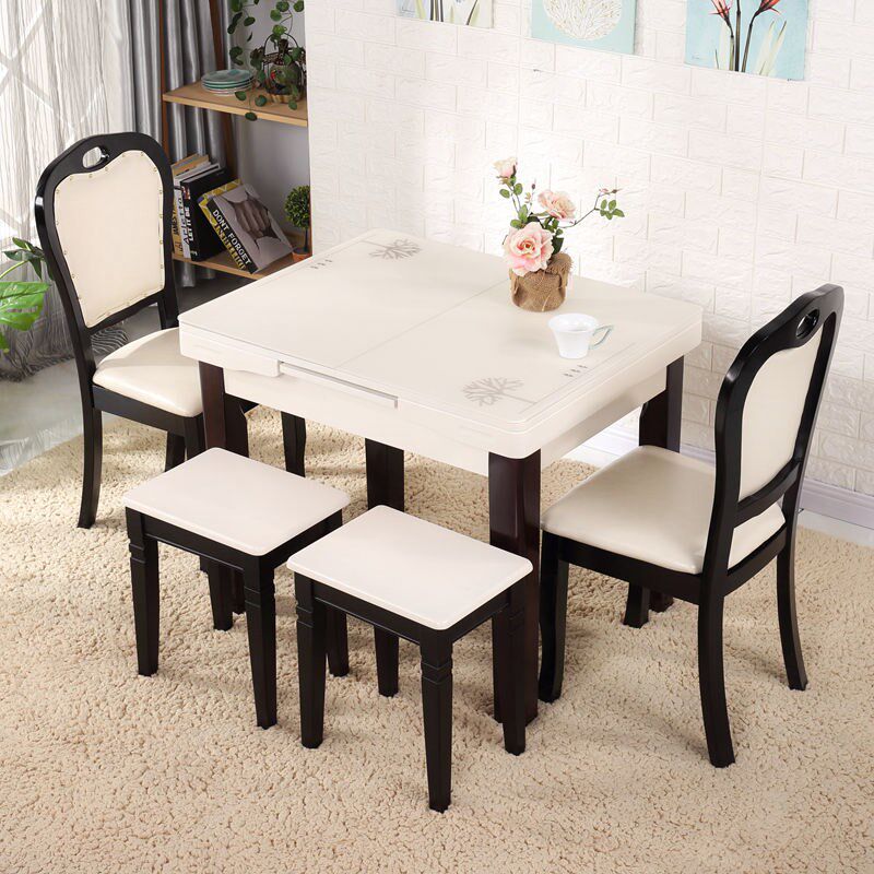 Простой и современный складной столик залитый стеклянный телескопический обеденный стол.