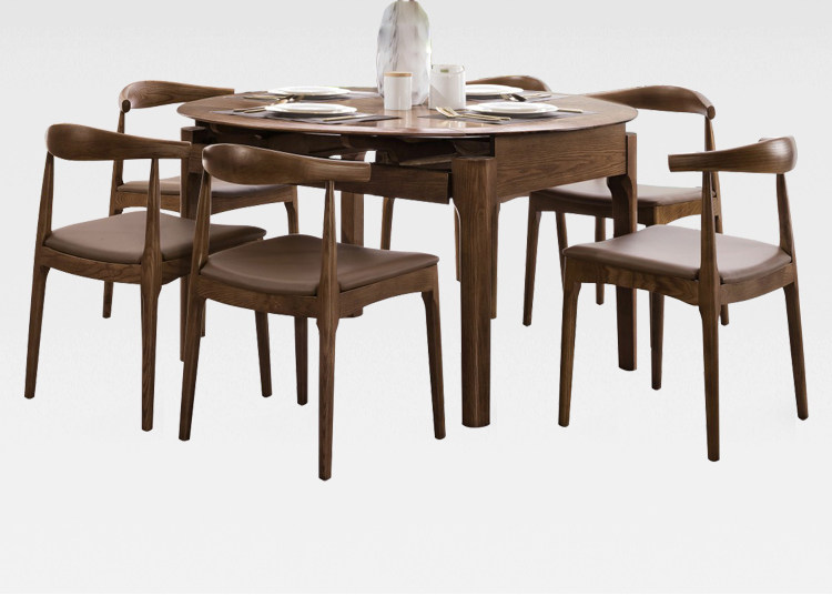 - Обеденный стол составляет 1,5 метра+6 бычьих стульев (сплошные деревянные панели)