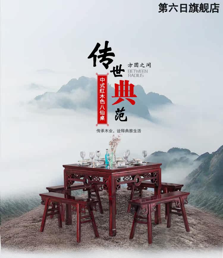 Античный восемь бессмертных стола в стиле китайского в стиле сплошной древесины и комбинации стул Домашний квадратный квадратный квадрат экономика