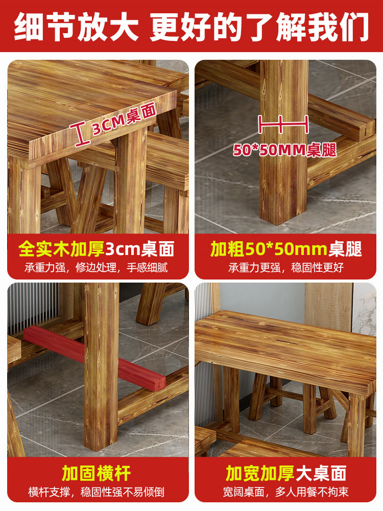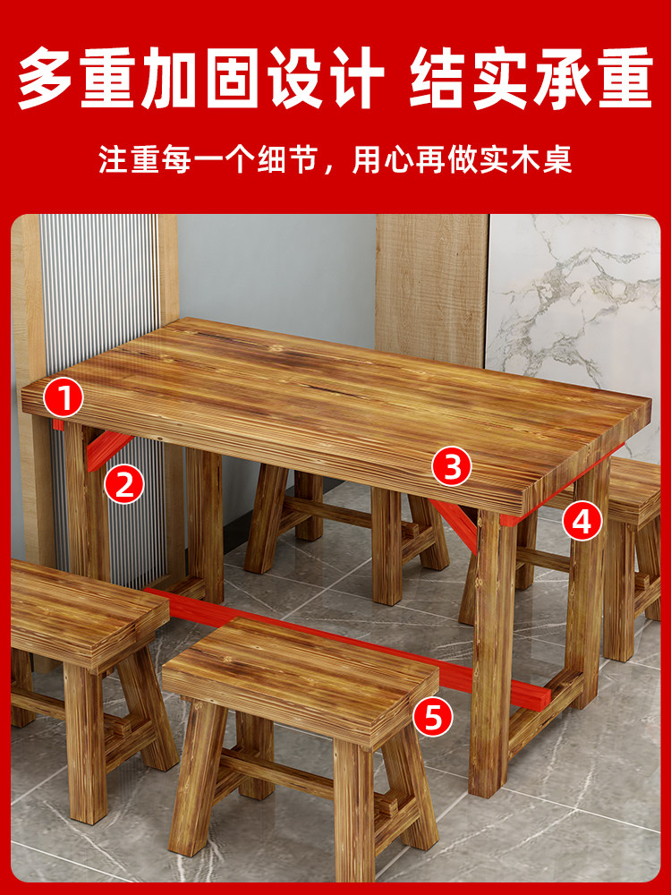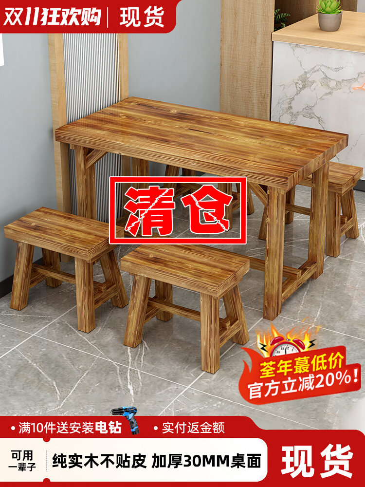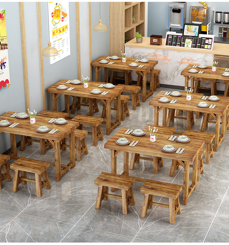 Стол с лапшой, стул в ресторан закуски коммерческий обеденный стол и стул Комбинированное дерево ресторан кафетерия столовые барбекю Карбонизированный деревянный стол