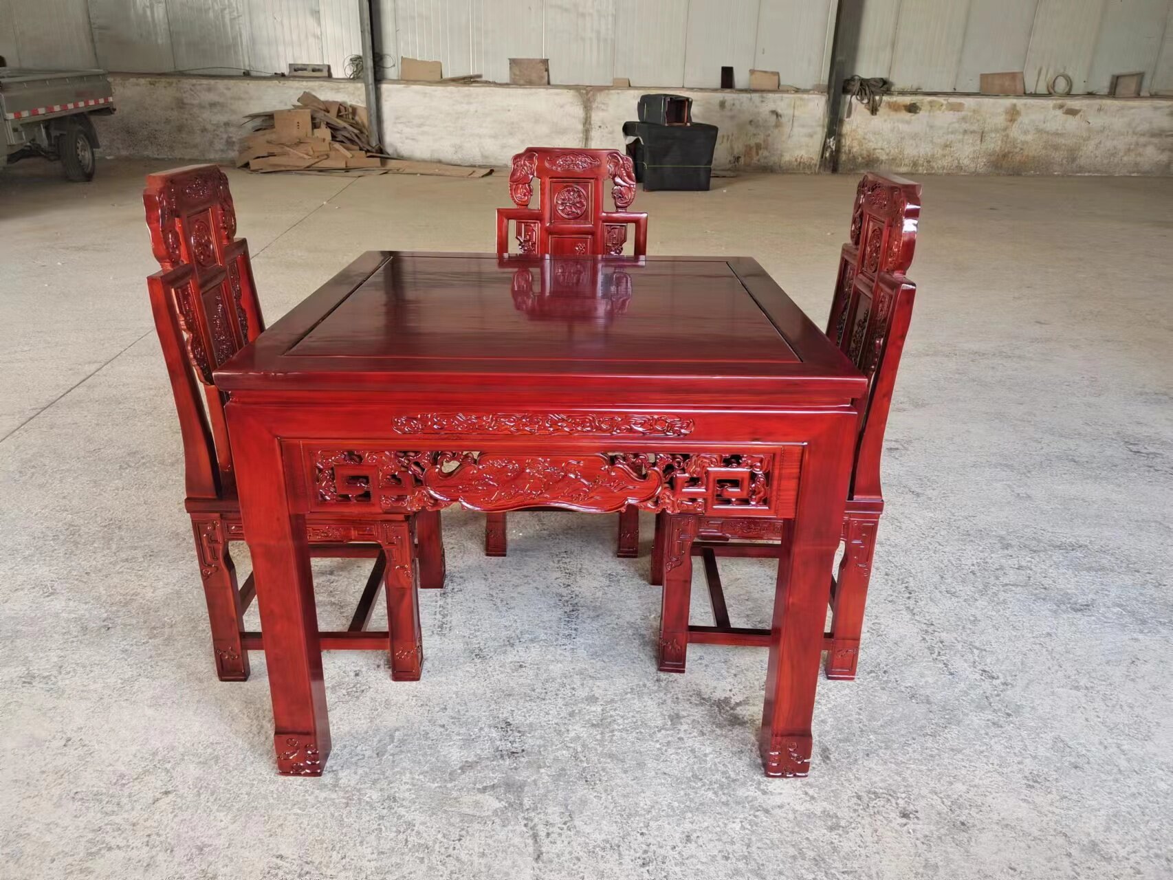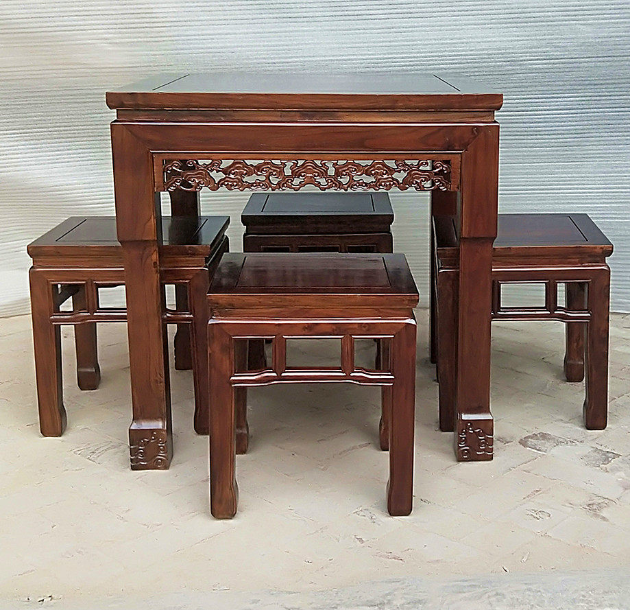 Династии Мин и Цин Старый Вяз Стол Квадрат китайский классический классический резной резные восемь бессмертных столов Длинные стулья Площади и столы и стулья