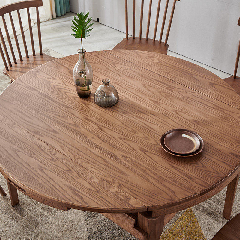 Скандинавский телескопический круглый стол, складной стол и стул из массива дерева, круглый обеденный стол, бытовая мебель из ясеня, обеденный стол