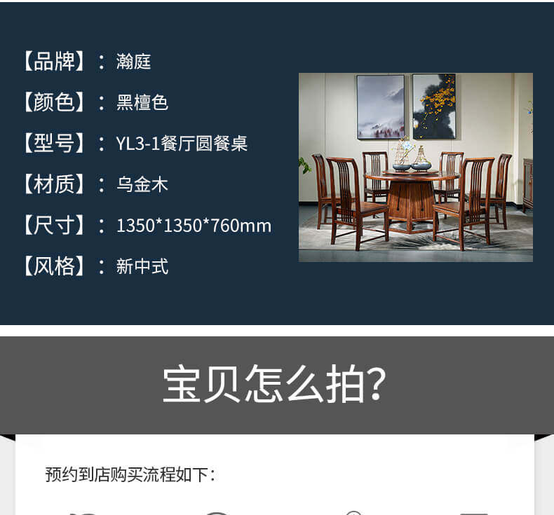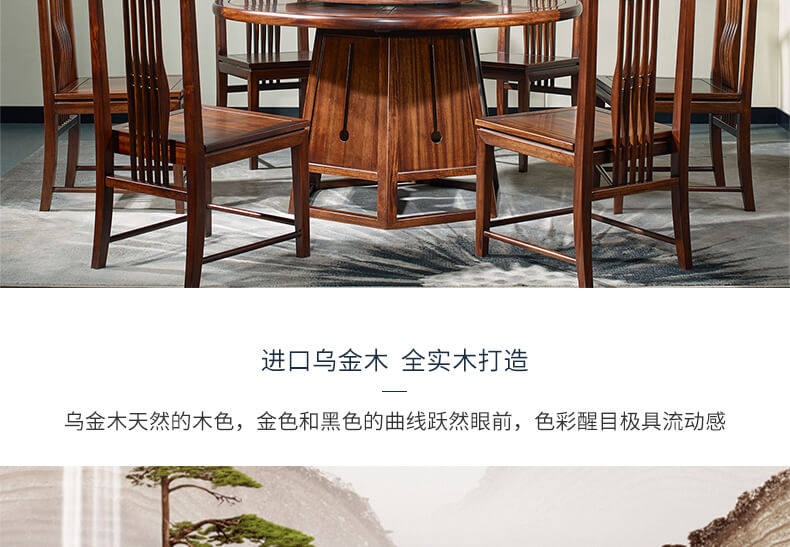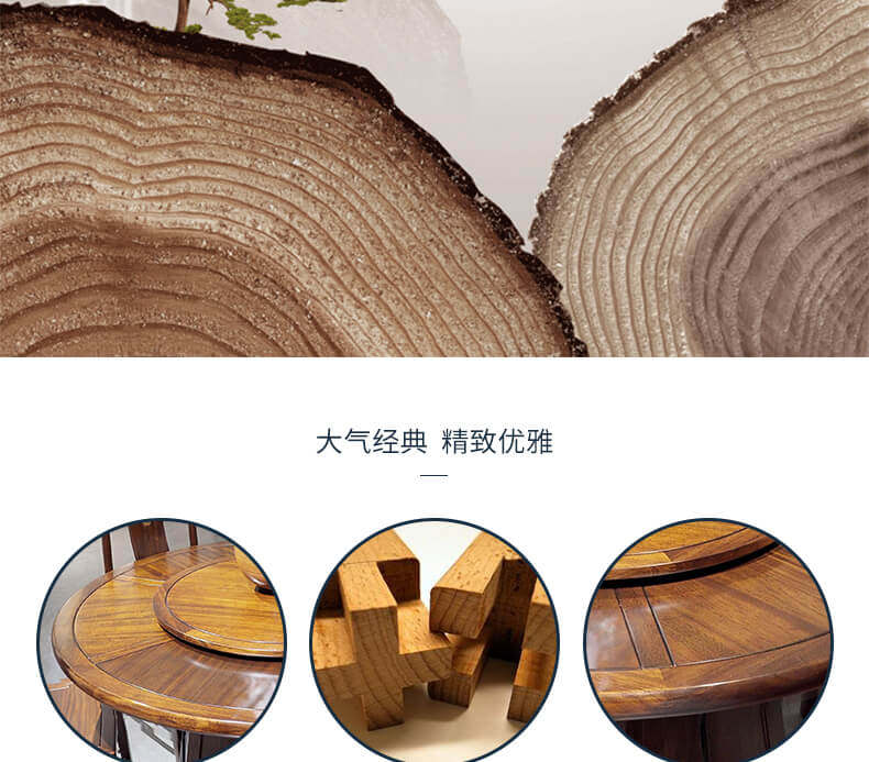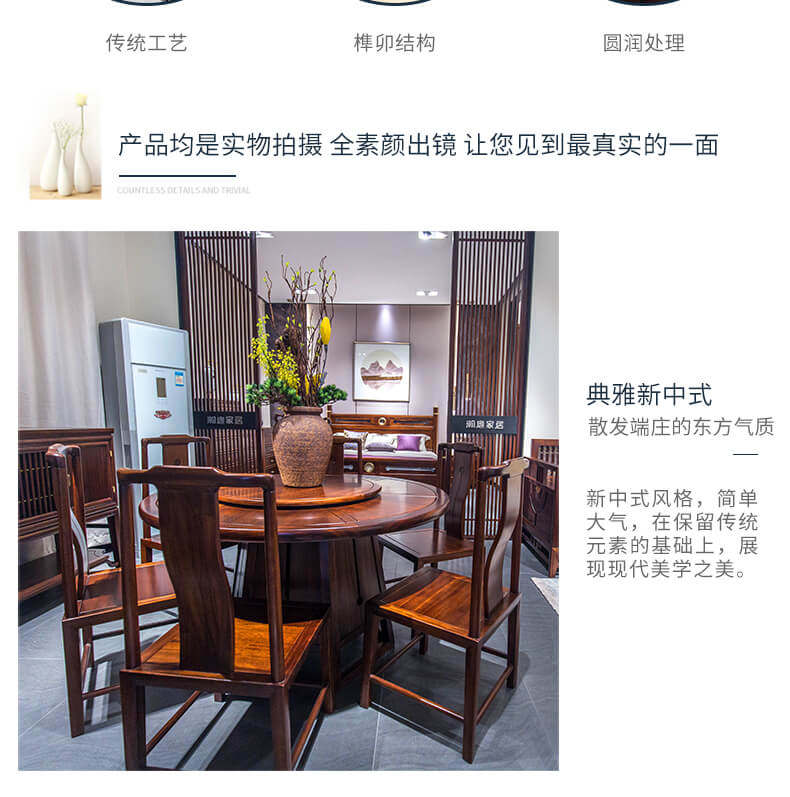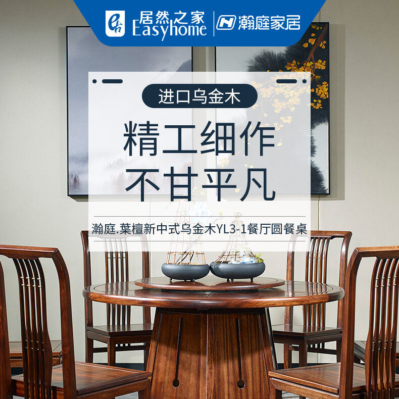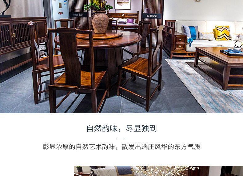 瀚庭丽家 Новый китайский чистый сплошной древесина круглый обеденный стол 1,35 метра YL3-1