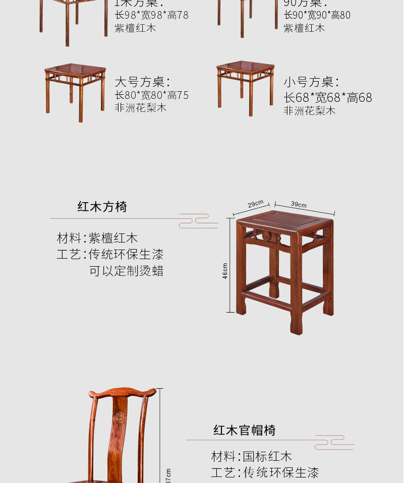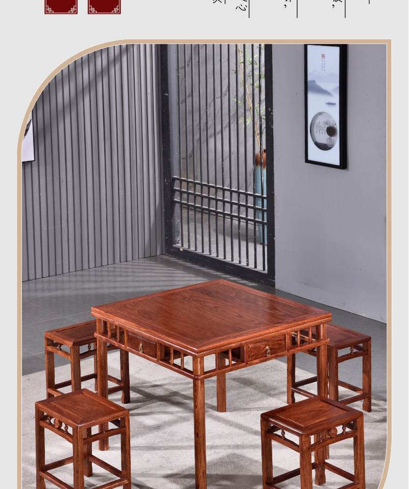 - Ежа красная сандаловая дерево 90 квадратных столов с четырьмя квадратными табуретками