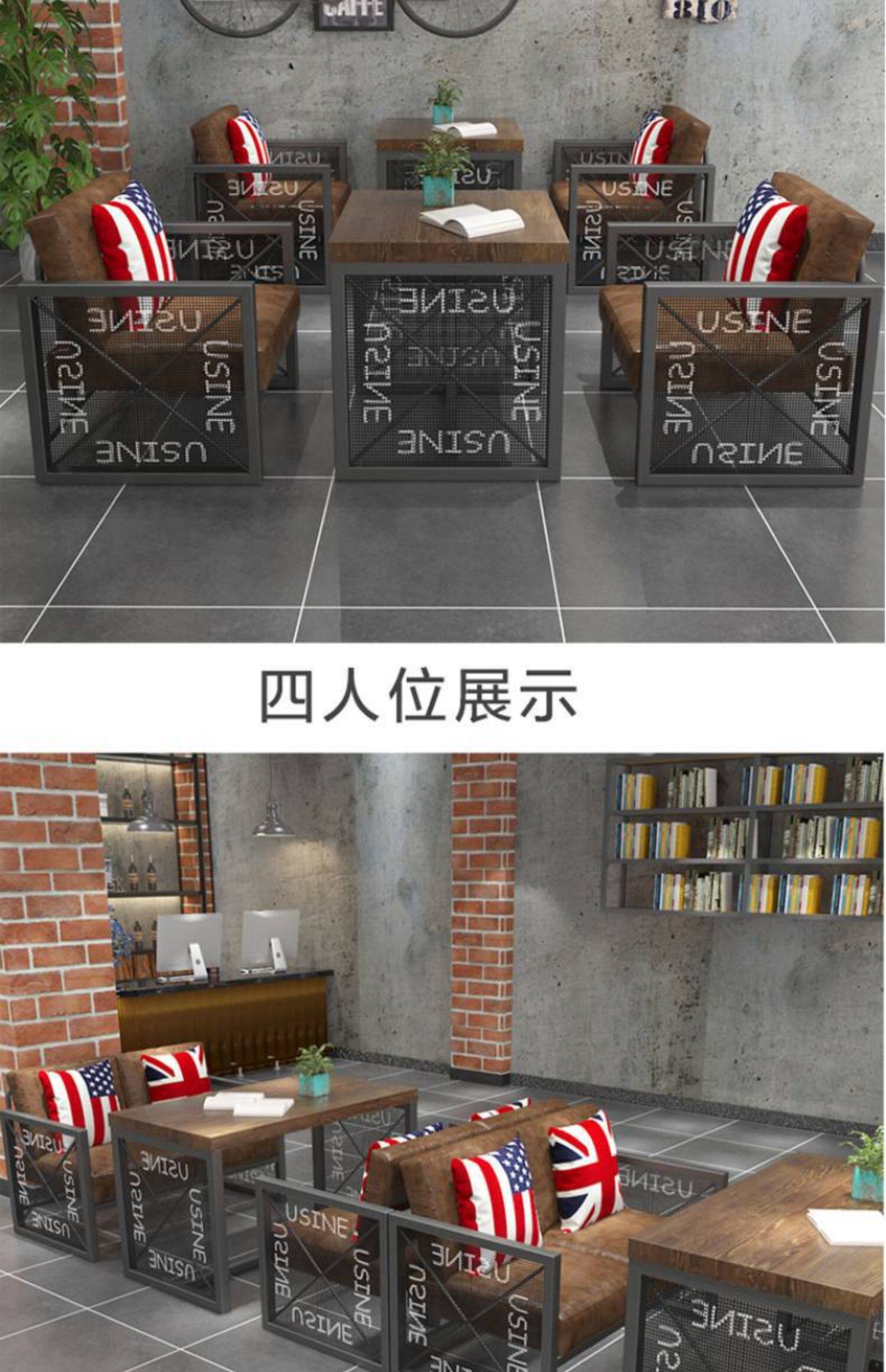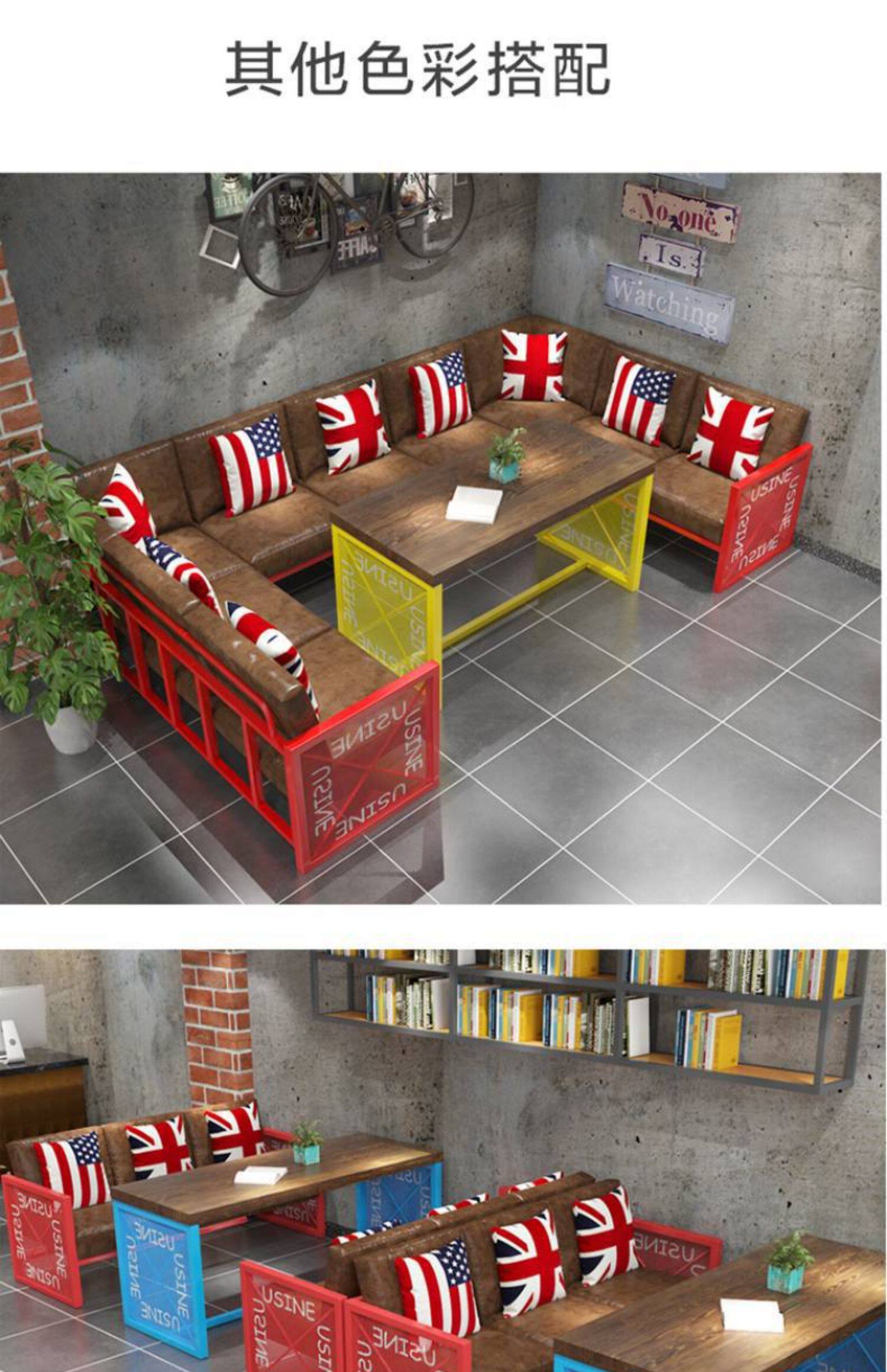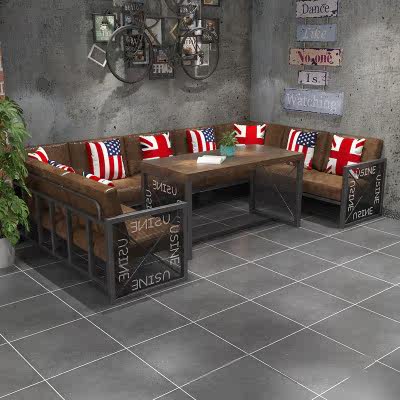Американский обеденный стол ретро ностальгический железо с твердым деревом прямоугольный стол прозрачный бар таверна музыкальный обеденный бар Комбинация стула Комбинация
