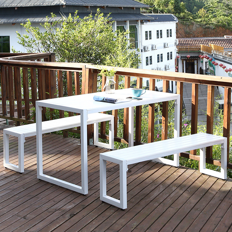 Белый на открытом воздухе простые досуговые столы и стул Комбинированные открытые балконы.