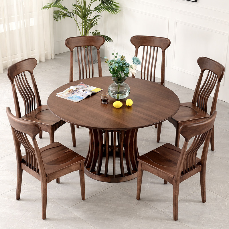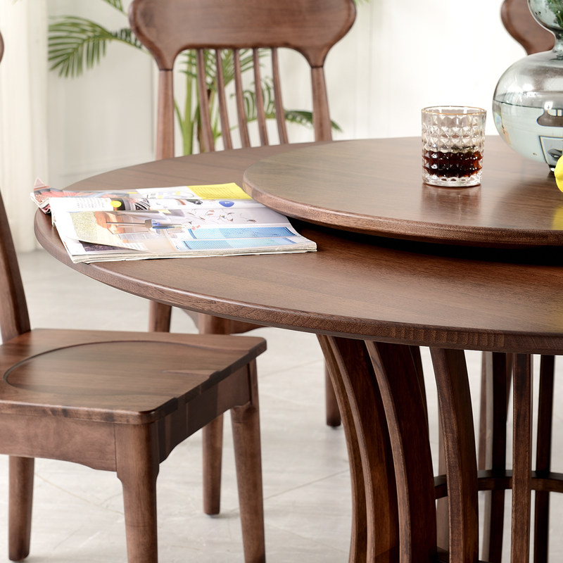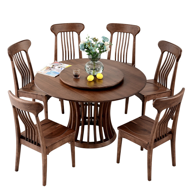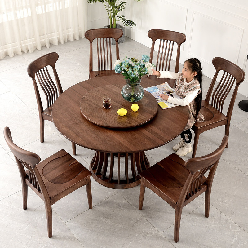 Полный деревянный стол Hyundai Simple Black Walletal House Круглый стол 6-8 круглые обеденные столы и комбинация стула с поворотным столом