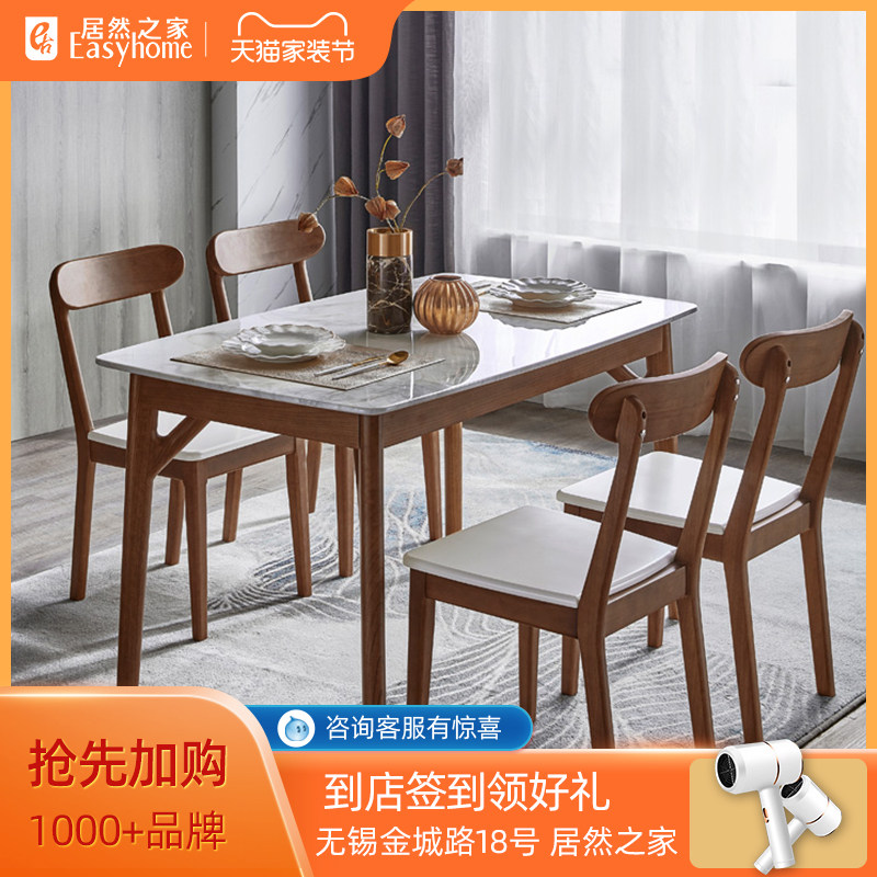 林氏木业 Роскошный мраморный обеденный стол в скандинавском стиле, основание стола из массива дерева, простая современная комбинация обеденного стола и стула